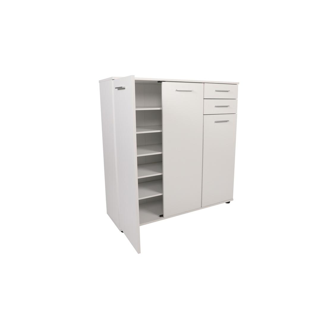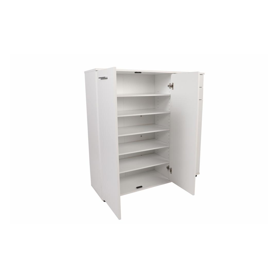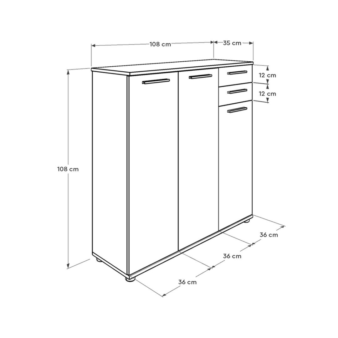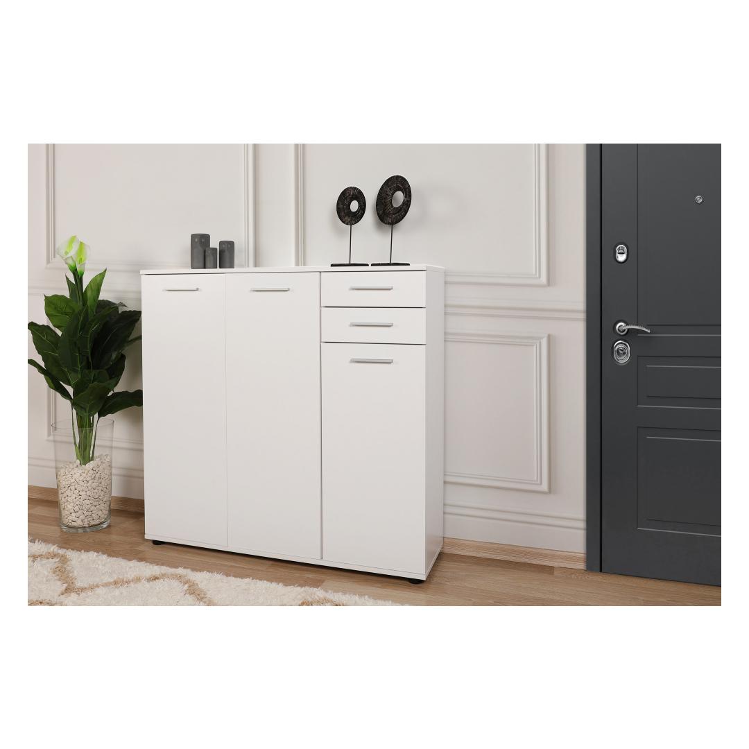 Muunna kotisi tyylikkäällä ja toimivalla kenkäkaapillaOletko kyllästynyt kompastelemaan kenkiin, jotka ovat hajallaan eteisessäsi? kaipaatko tyylikästä ja organisoitua ratkaisua, jossa jalkineesi pysyvät siististi säilytettyinä?Älä etsi kauempaa kuin hienosta kenkäkaapistamme!Koe täydellinen yhdistelmä tyyliä ja toiminnallisuuttaTämä huolellisesti valmistettu kenkäkaappi on suunniteltu parantamaan kotisi esteettistä ilmettä samalla kun se tarjoaa runsaasti tilaa rakkaiden kenkiesi säilyttämiseen. Sen tyylikäs ja moderni muotoilu yhdistettynä valkoiseen väriin täydentää vaivattomasti mitä tahansa sisustusta ja tuo tilaan tyylikkyyttä.Pysy järjestyksessä ja säästä tilaaKahden tilavan laatikon ja lukuisten hyllyjen ansiosta kenkäkaappi tarjoaa täydellisen ratkaisun kenkiesi pitämiseen järjestyksessä ja helposti saatavilla. Sinun ei tarvitse tuhlata aikaa oikean kenkäparin etsimiseen! suuri kapasiteetti takaa, että kaikki kenkäsi lenkkareista korkokenkiin löytävät paikkansa. Turvallinen ja monipuolinen muotoiluKenkäkaappi on paitsi esteettisesti miellyttävä, myös erittäin toimiva. Se voidaan helposti kiinnittää seinään vakauden vuoksi ja pitää kenkäsi turvassa. Tämän monipuolisen muotoilun ansiosta se voidaan sijoittaa mihin tahansa huoneeseen, olipa kyseessä sitten eteinen, makuuhuone tai jopa vaatehuone. Tekniset tiedot:Materiaali:Materiaali:Materiaali:Materiaali:Materiaali:Materiaali:Materiaali:Materiaali:Materiaali:Materiaali:Materiaali:Materiaali:Materiaali:100 % melamiinipäällysteinen lastulevyPaksuus:16 mmMitat:Leveys:108 cmKorkeus:108 cmKorkeus:108 cmSyvyys:35 cmLokeron koko:Leveys:36 cmKorkeus:12 cmKorkeus:35 cmVäri: valkoinenVärjennä kotiasi ja sano hyvästit kenkien kiillottamiselle poikkeuksellisella kenkäkaapilla. Tilaa nyt ja koe täydellinen yhdistelmä tyyliä, toiminnallisuutta ja organisointia! Väri: valkoinen