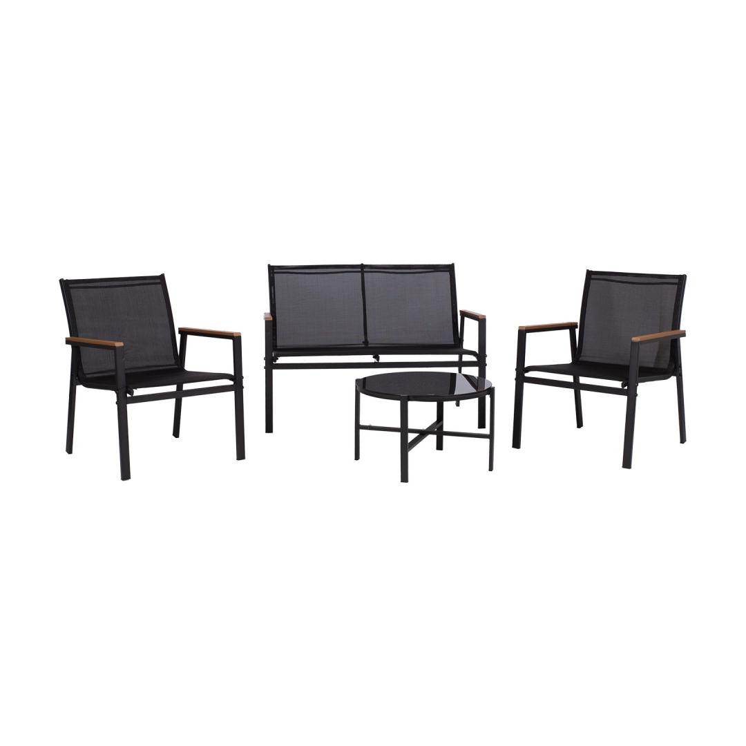 Puutarhakalustesarja CANAAN pöytä, penkki ja 2 tuolia, musta