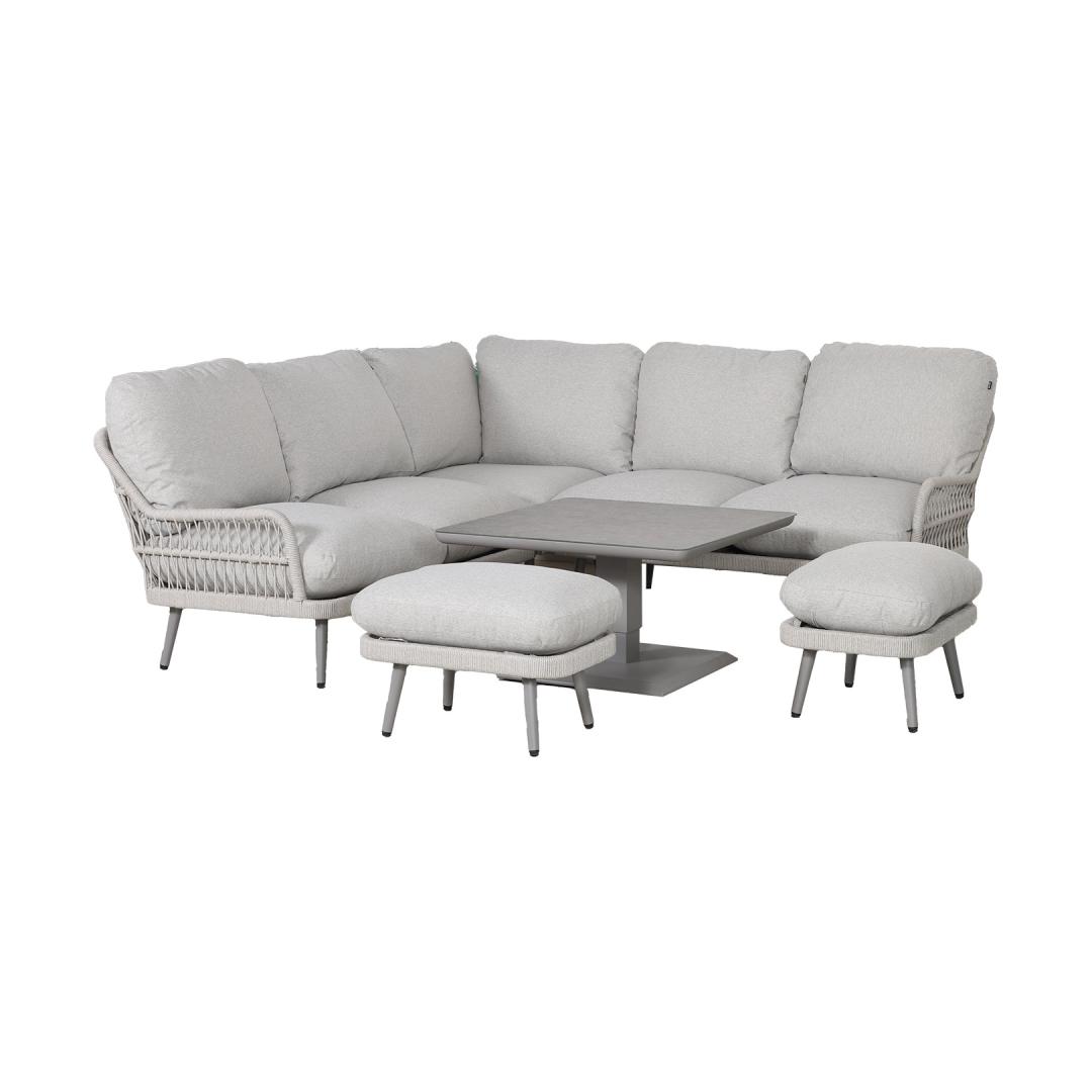 Sarja sisältää pöydän, jossa on säädettävä korkeus, kulmasohvan ja 2 tuolia.