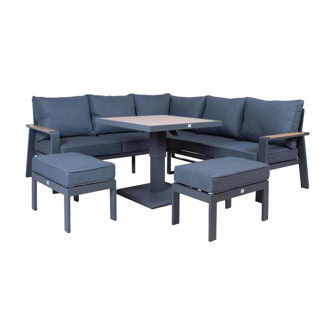 Puutarhakalustesarja PARKER pöytä, kulmasohva ja 2 tuolia, harmaa
