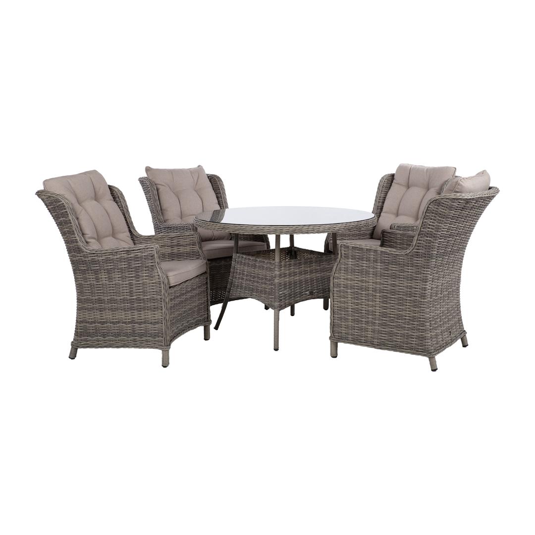 Puutarhakalustesarja TRENTO pöytä ja 4 tuolia, vaaleanharmaa.