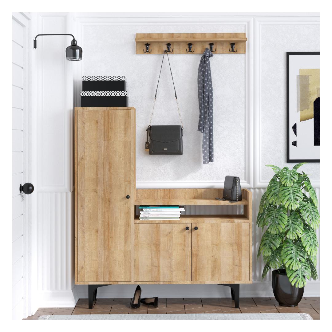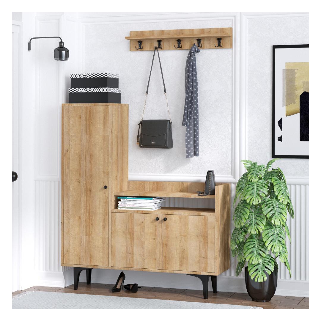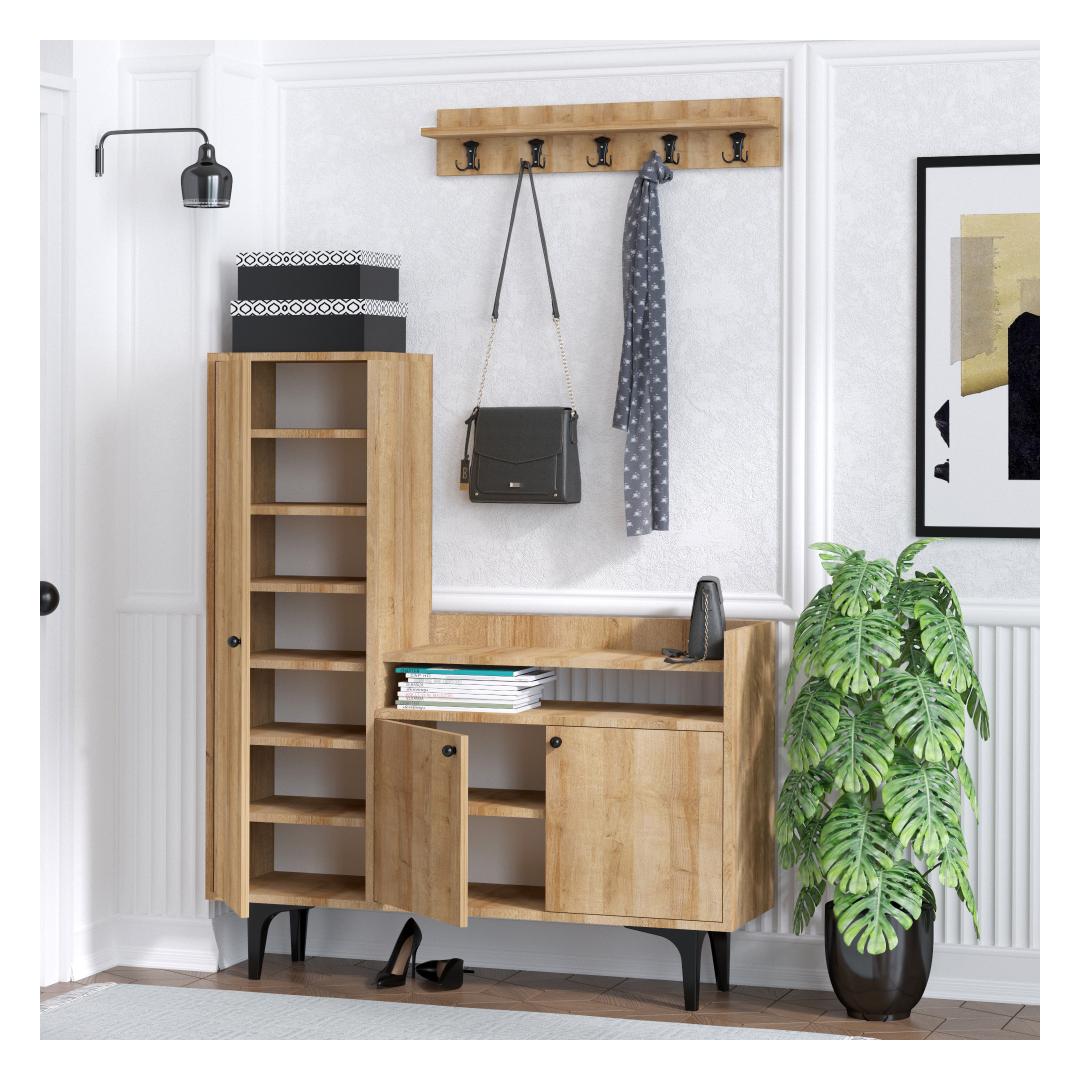 Muunna eteinen täydelliseksi kenkäkaapiksiOletko kyllästynyt kompastumaan kenkiin heti, kun astut eteiseen? sano hyvästit sotkulle ja tervehdi järjestystä upean kenkäkaapin avulla. Tämä 100-prosenttisesti melamiinipinnoitetusta lastulevystä valmistettu kenkäkaappi ei ole ainoastaan kestävä, vaan se myös lisää tyylikkyyttä mihin tahansa huoneeseen.Luo tyylikäs ja toimiva eteinenKenkäkaappimme on tyylikkään muotoilunsa ja runsaan säilytystilansa ansiosta täydellinen lisä eteiseen. Lukuisat hyllyt tarjoavat runsaasti tilaa järjestää kaikki kenkäsi siististi, pitää ne poissa näkyvistä ja luo sotkuisen ympäristön. Ripustettava takkiteline on kätevä ominaisuus, jonka avulla voit ripustaa takkeja, hattuja ja huiveja, jolloin ne pysyvät helposti saatavilla. Paranna kotiasi ripauksella eleganssiaTämän kenkäkaapin tammipintainen viimeistely lisää lämpöä ja eleganssia mihin tahansa huoneeseen. Olipa kotisi sisustus sitten perinteinen, teollinen tai skandinaavinen, tämä kaappi sulautuu siihen saumattomasti ja parantaa kokonaisestetiikkaa. Sen selkeät linjat ja minimalistinen muotoilu tekevät siitä monipuolisen kappaleen, joka sopii mihin tahansa tyyliin. Tekniset tiedot:Materiaali:Materiaali:Materiaali:Materiaali:Materiaali:Materiaali:Materiaali:Materiaali:Materiaali:Materiaali:Materiaali:Materiaali:Materiaali:Materiaali:Materiaali:100 % melamiinipäällysteinen lastulevyPaksuus:18 mmKaapin koko.Koko: Leveys: 80 cm, Korkeus: 15 cm, Syvyys: 12 cmMuovijalat vakauden takaamiseksiSaranoitu vaateteline lisää mukavuuttaTäydet hyllyt runsaaseen säilytykseenVoidaan asentaa seinälle lisäturvallisuuden takaamiseksiÄlä anna sotkuisten ruokakomeroiden sisäänkäyntien heikentää tunnelmaa. Investoi kenkäkaappiin jo tänään ja muuta tilasi tyylikkääksi ja järjestäytyneeksi keidas. Tilaa nyt ja koe ero, jonka se tekee kotiisi! Väri: Tammi
