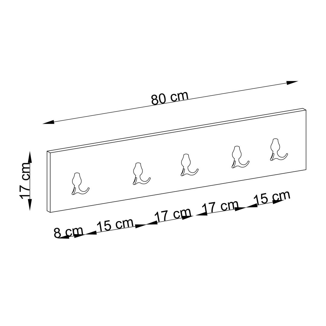 With a thickness of 18 mm and dimensions of 80 cm x 17 cm x 1.8 cm, this wall hook is easy to install and can hold a variety of items securely. Simply mount it on any wall in your home and enjoy the convenience and functionality it brings.