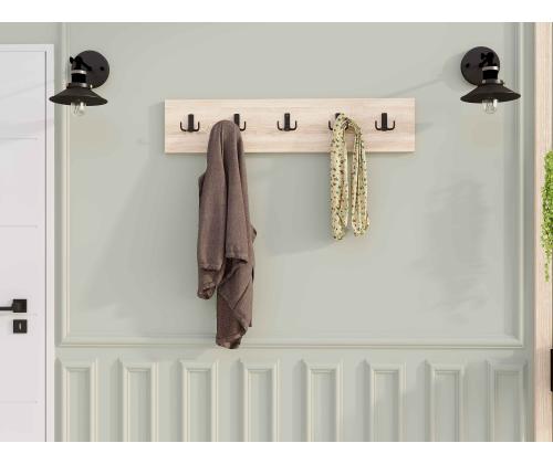 Crafted from 100% melamine coated particle board, this wall hook is not only durable and long-lasting but also easy to clean and maintain. The Sapphire Oak color adds a touch of sophistication to any decor, making it a versatile and stylish addition to your home.