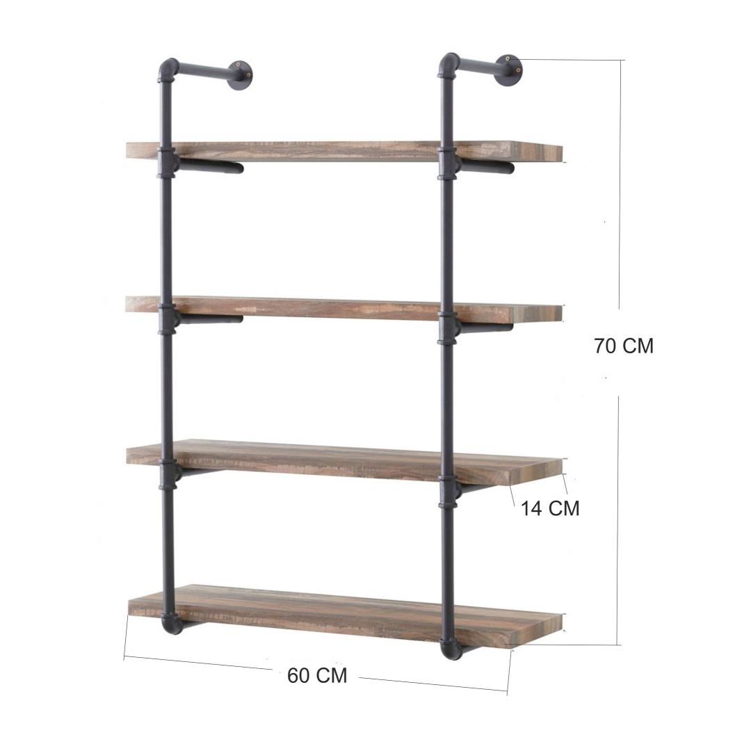 With numerous shelves, this pipe shelf provides ample space to showcase your favorite books, plants, or decorative items. Its sleek and compact design, with a width of 60 cm, height of 70 cm, and depth of 14 cm, makes it perfect for small spaces or tight corners.
