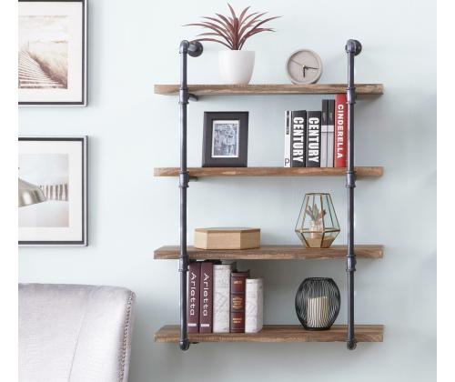 The pipe shelf is available in a stunning combination of walnut and black colors, allowing you to match it with any existing decor or create a striking contrast. This versatile color scheme adds a touch of elegance and sophistication to your space.