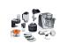 1 x kaas, 1 x riivimistarvik, 1 x roostevabast terasest segamisnõu, 1 x hakklihamasin, 1 x sõtkumiskonks, 1 x plastmassist blender, 1 x kahepoolne riivimisketas jäme/peen, 1 x peenriiv, 1 x kahepoolne viilutusketas paks/õhuke, 1 x tsitrusepress, 1 x tarvikute kott, 1 x terakaitsekork, 1 x säilituskorgiga klaaspurk, 1 x ToGo blenderitops, 1 x ketas 5 mm, 1 x kvaliteetne vispel, 1 x kvaliteetne segamisvispel