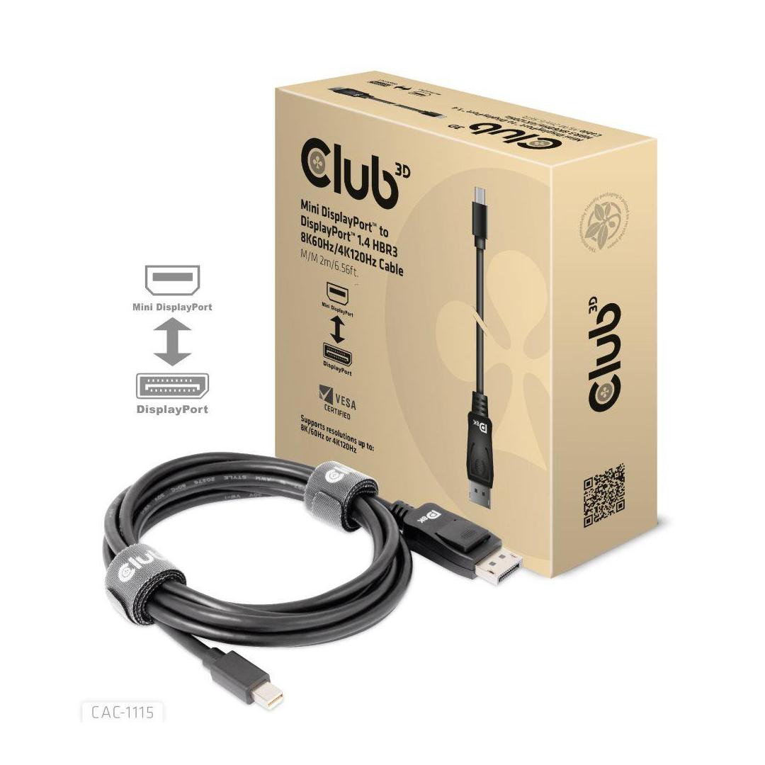 KAAPELI MINI DP TO DP 2M/M/M CAC-1115 CLUB3D