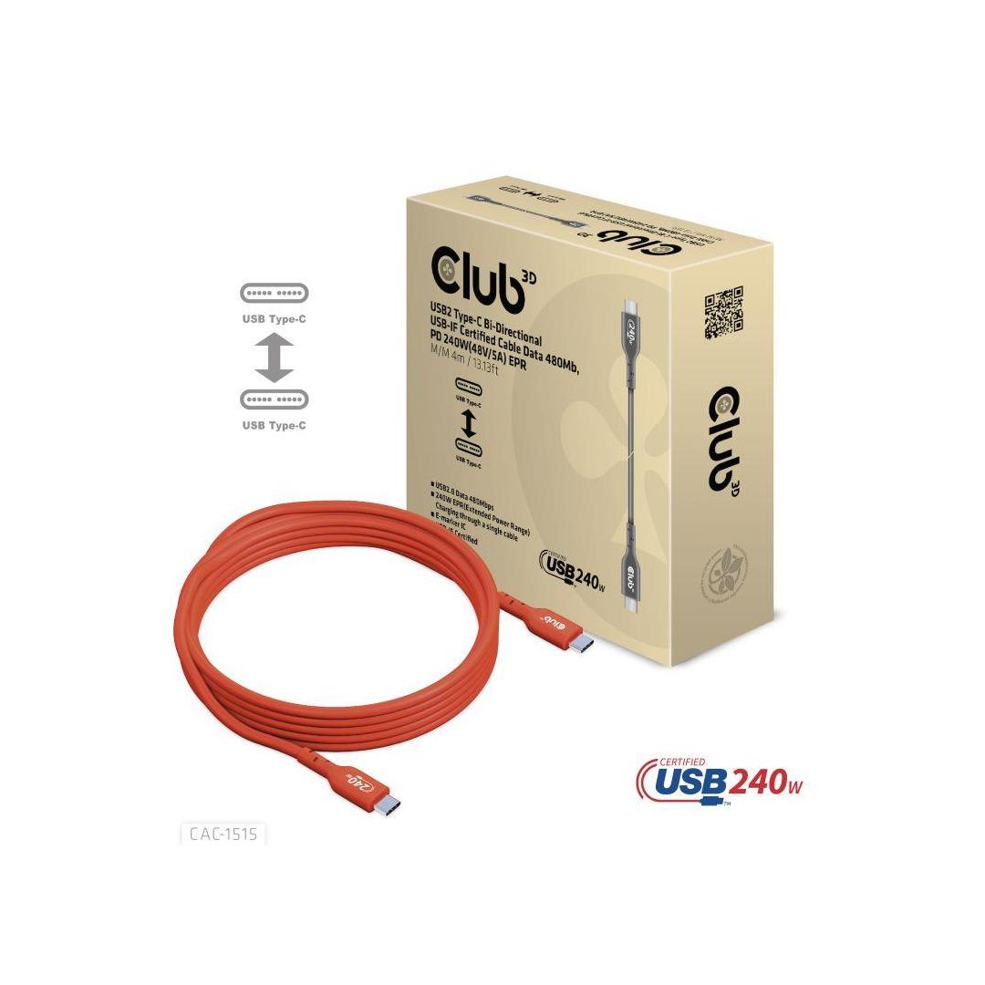 KAAPELI USB-C USB-C 4M/M/M CAC-1515 CLUB3D