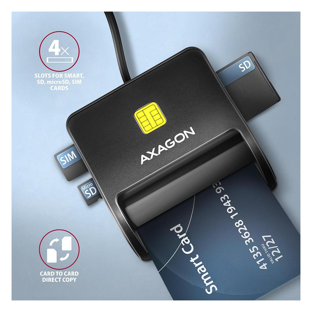 KORTINLUKIJA LITTEÄ SMARTCARD 4SL/USB2.0 1.3M CRE-SM3SD AXAGON