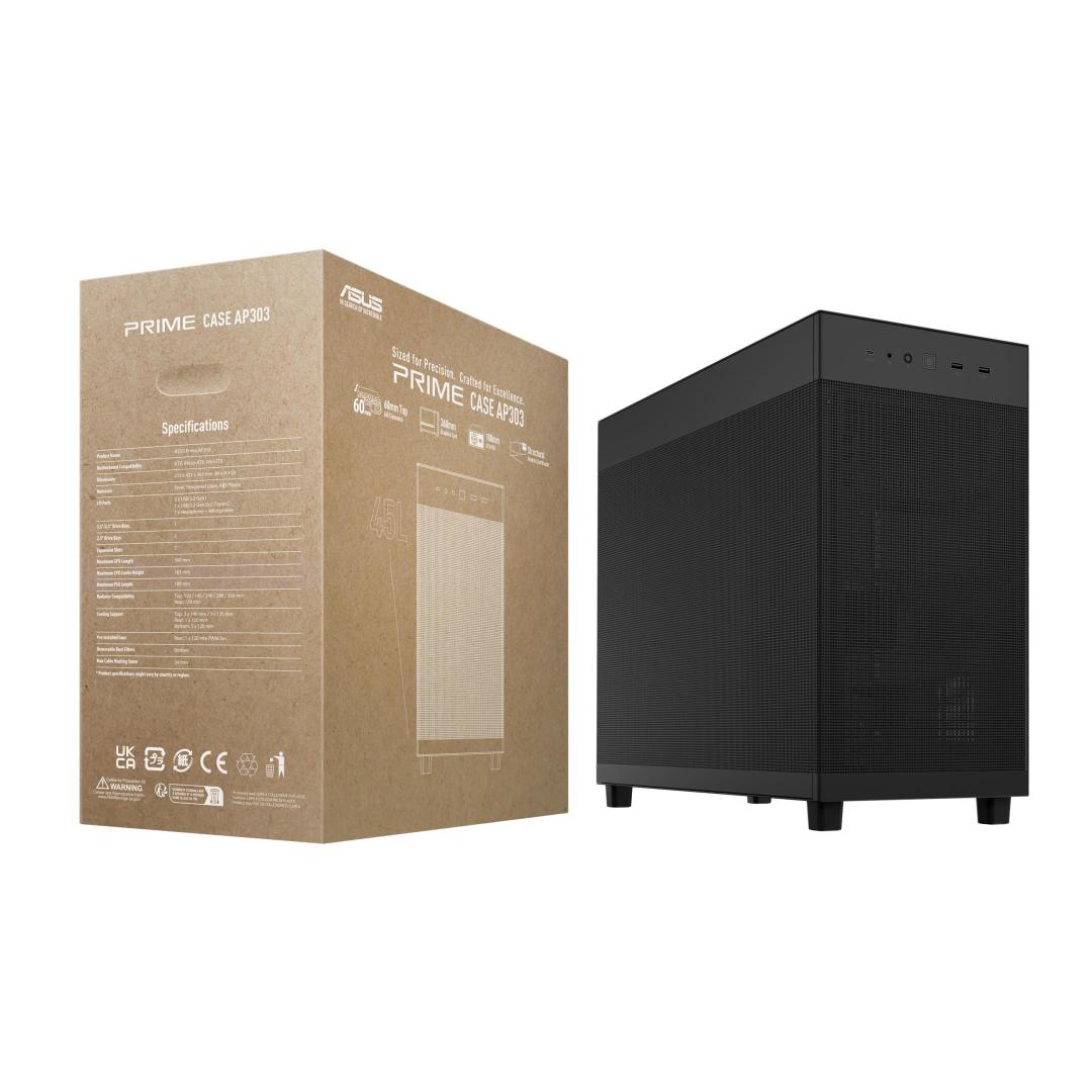ASUS Prime AP303 on kompakti 44-litrainen ATX-kotelo, johon mahtuu 360 mm:n paksuiset, jopa 60 mm:n paksuiset jäähdyttimet ja jopa 360 mm:n pituiset näytönohjaimet. Siinä on näytönohjaimen kiinnike ja pidike, jotta kortit pysyvät tukevasti paikoillaan, sekä sisäinen virtajohto, joka tuottaa 15 ampeeria vakaan virransyötön ylläpitämiseksi huippuluokan PC-rakennuksissa.
