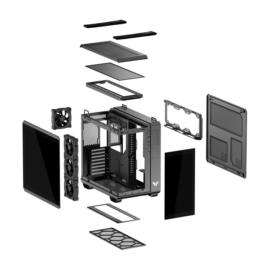 Kotelo ASUS TUF Gaming GT502 Horizon MidiTower Case tuotteen ominaisuudet Läpinäkyvä paneeli Ei sisälly...