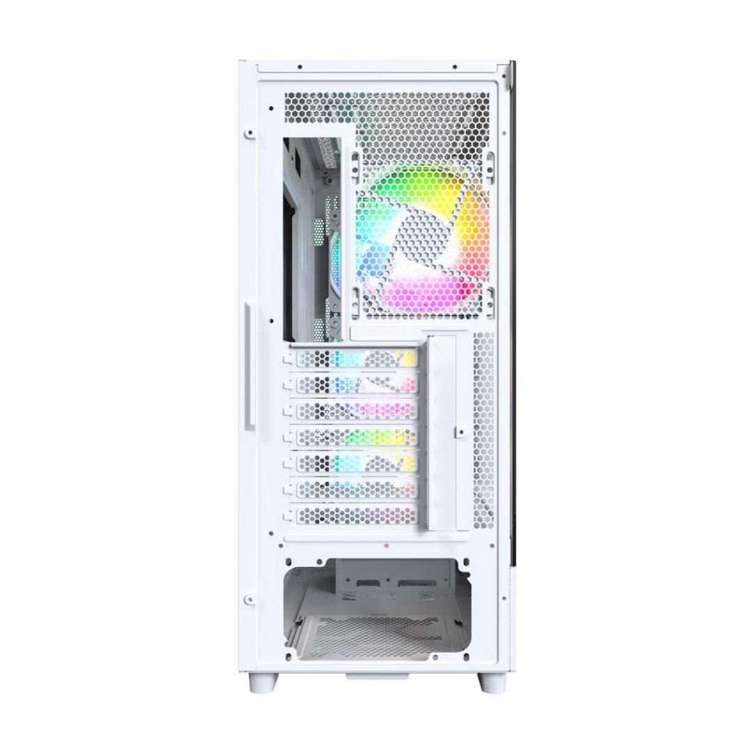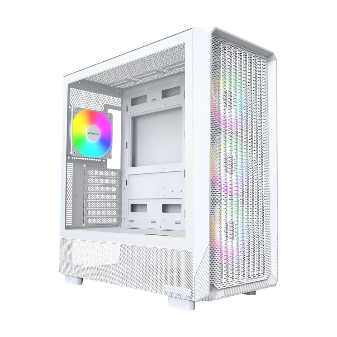 Montech X5. Form factor: Midi Tower, Type: PC, Product colour: White. Supported power supply form factors: ATX. Front fans installed: 3x 140 mm, Front fans diameters supported: 120,140 mm, Rear fans installed: 1x 120 mm. Supported HDD sizes: 3.5", SSD form factor: 2.5". Width: 216 mm, Depth: 482 mm, Height: 496 mm