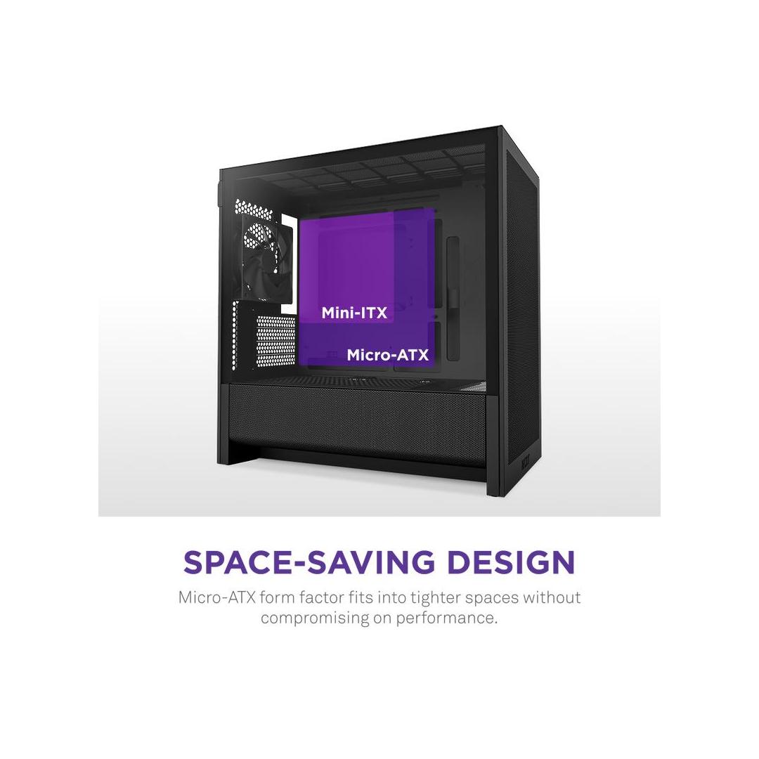- Tilaa säästävä koko: Tilaa säästävä micro-ATX-kotelo, johon mahtuu suorituskykyisiä komponentteja ilman kompromisseja.