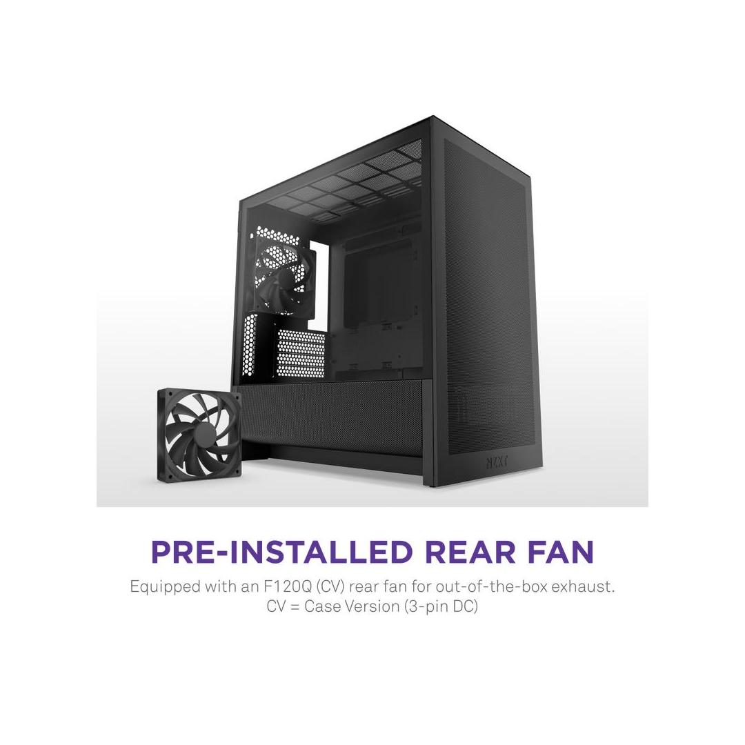 - Esiasennettu takatuuletin: Sisältää yhden F120Q (CV) -tuulettimen takaosassa, joka tarjoaa tehokkaan poistoilmavirran suoraan laatikosta. CV = koteloversio (3-nastainen DC)