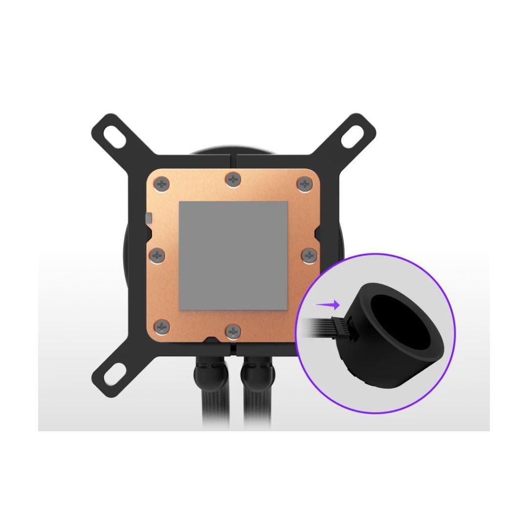 - Optimoitu kylmälevy: Jaetun virtauksen kuparinen kylmälevy kanavoi jäähdytysnesteen prosessorin kuumimpiin alueisiin paremman lämmönsiirron, alhaisempien lämpötilojen ja tasaisemman lämpötehokkuuden saavuttamiseksi.