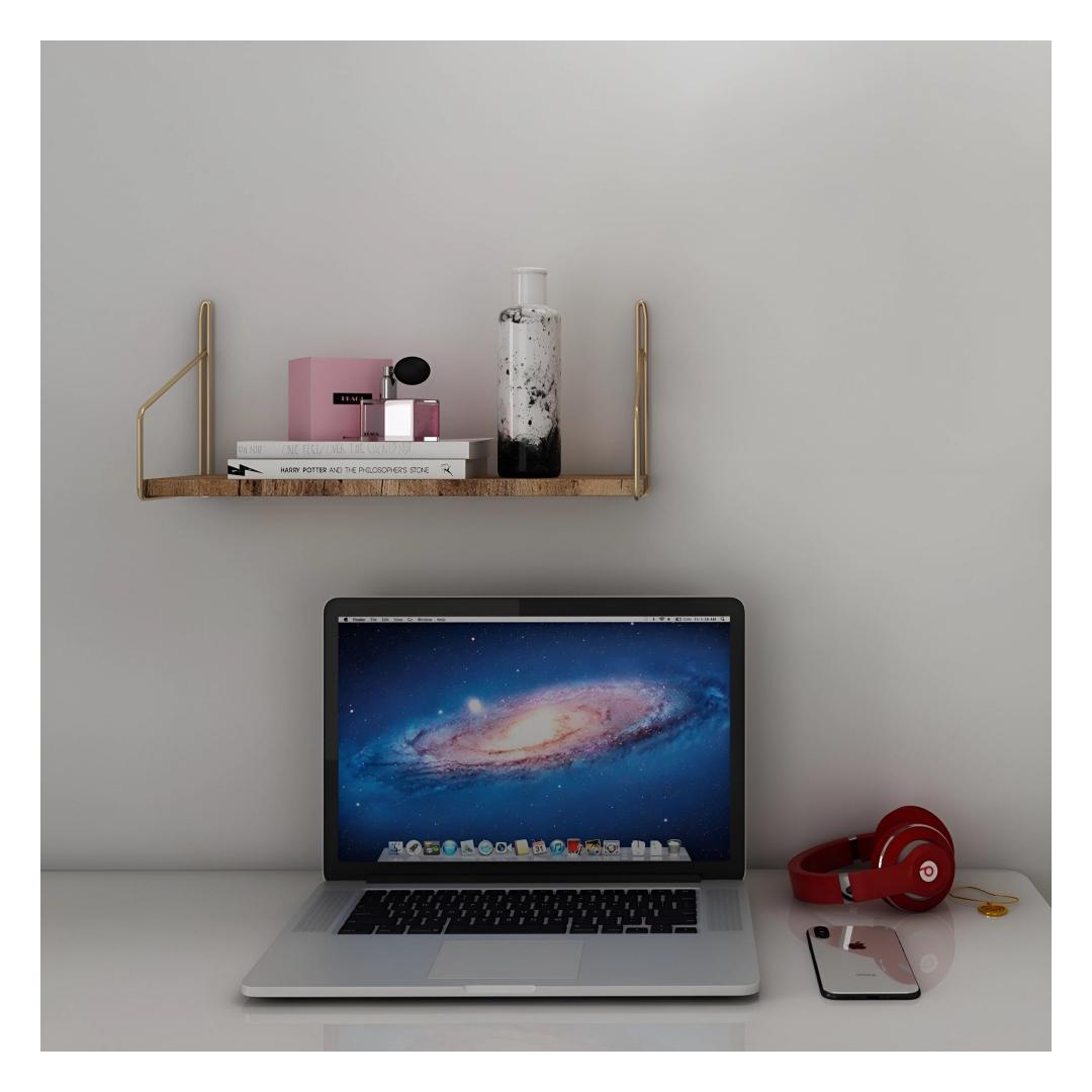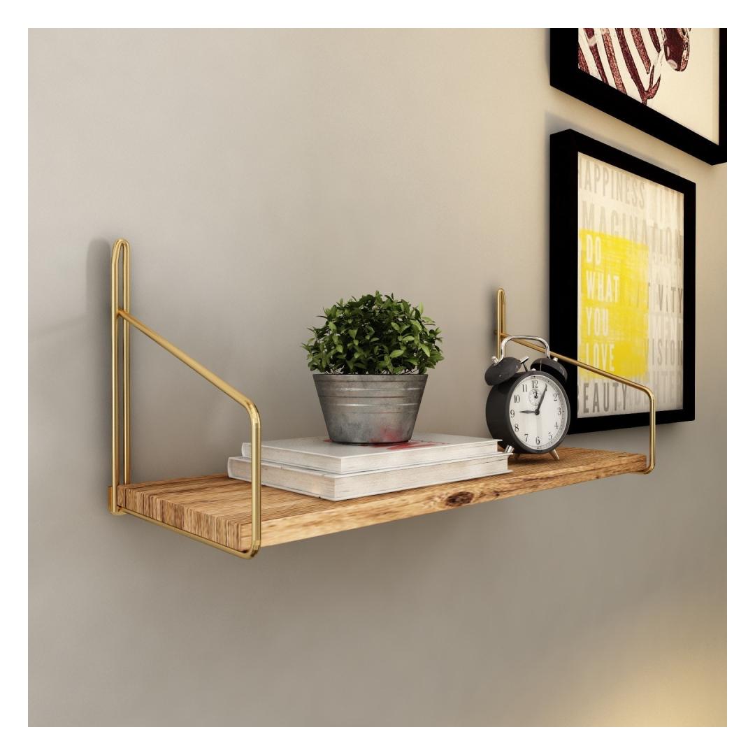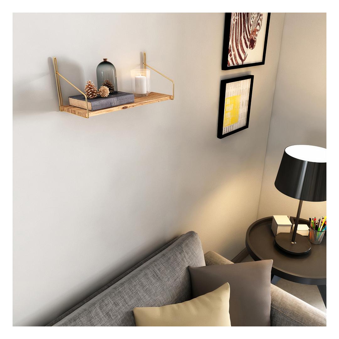 The combination of gold and brown colors adds a touch of sophistication to any space, making it a versatile addition to your home decor. Whether you want to showcase your favorite books, decorative items, or family photos, this wall shelf will effortlessly complement any interior style.