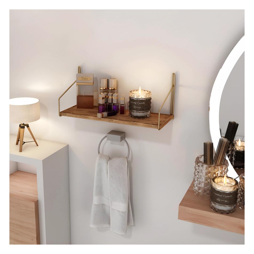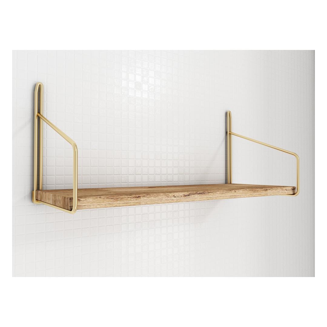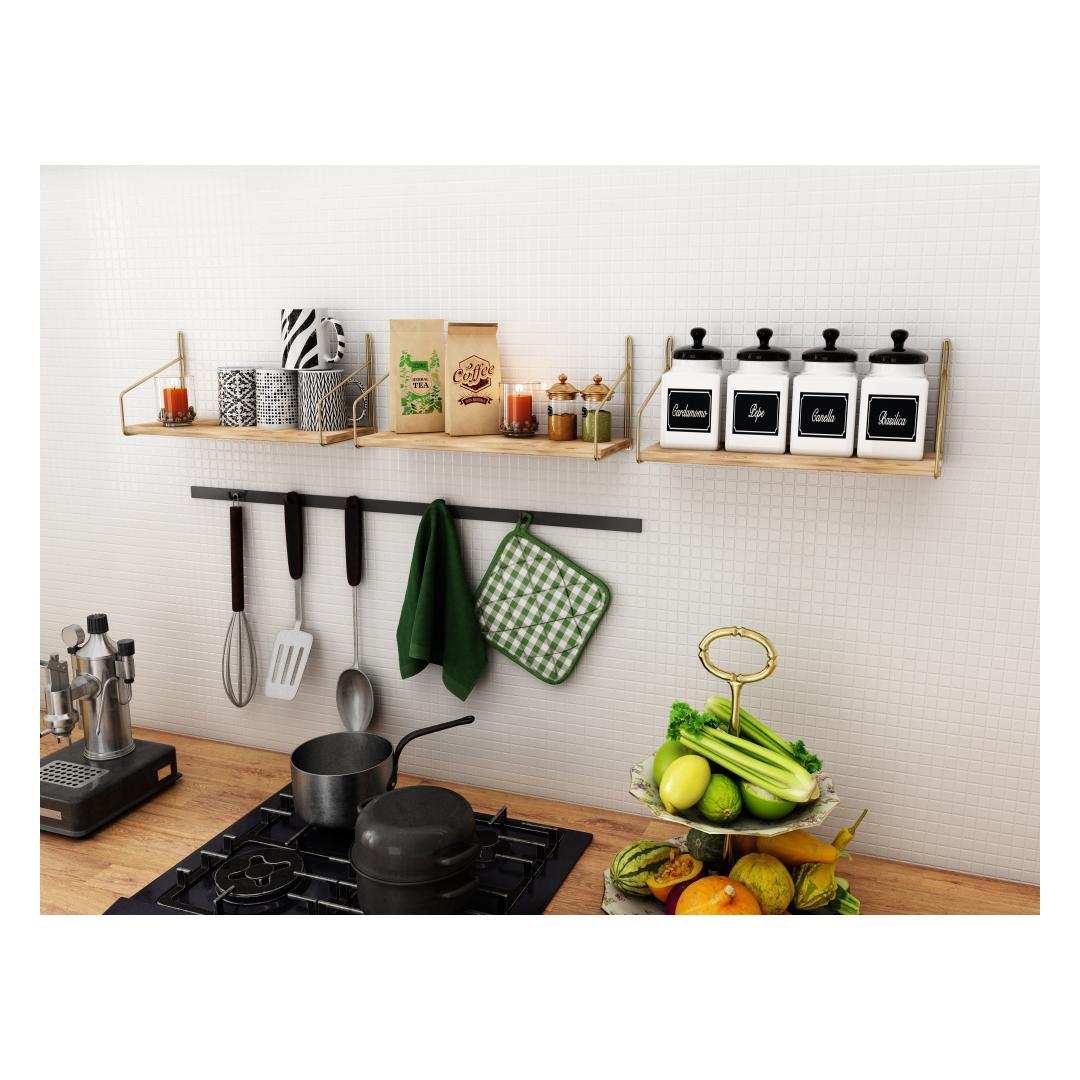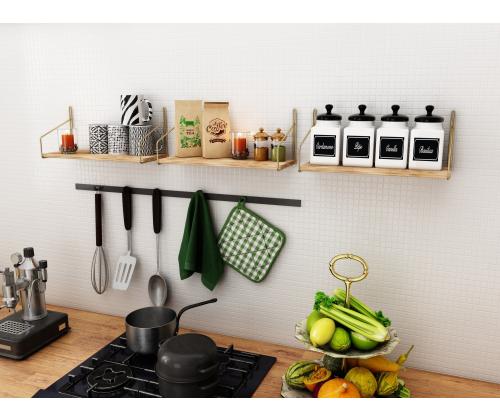 The combination of gold and brown colors adds a touch of sophistication to any space, making it a versatile addition to your home decor. Whether you want to showcase your favorite books, decorative items, or family photos, this wall shelf will effortlessly complement any interior style.