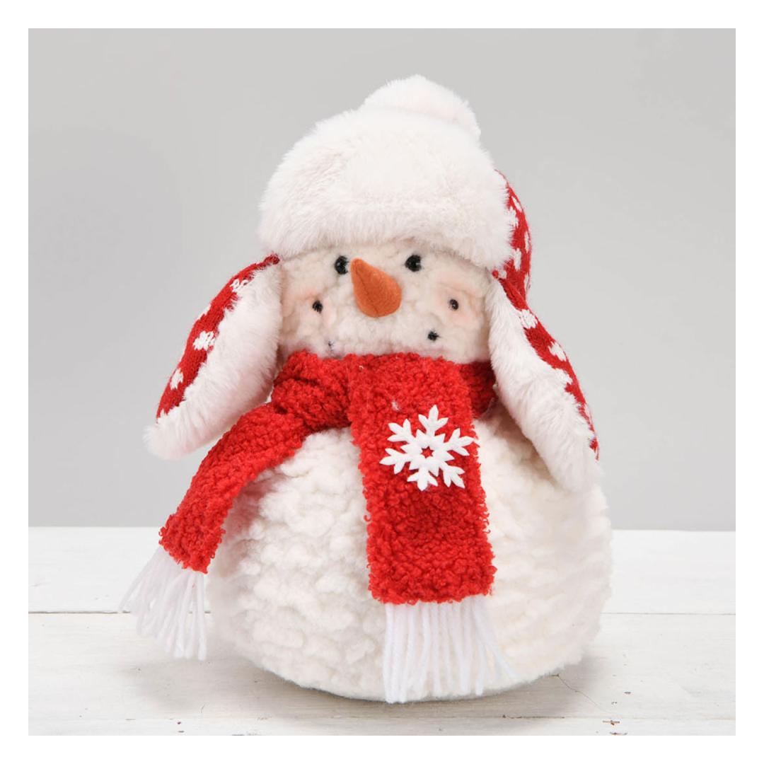 Mitat: 17x16xH26cm Koriste FUN KAI, lumiukko punaisella huivilla.