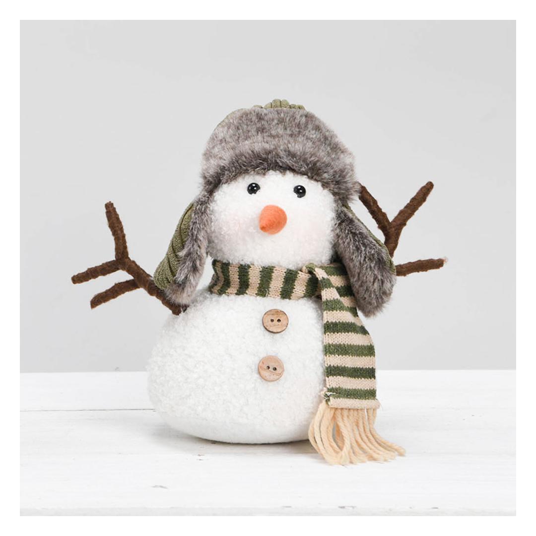 Mitat: 27x12xH33cm Koriste FUN RON, lumiukko ja raidallinen huivi.