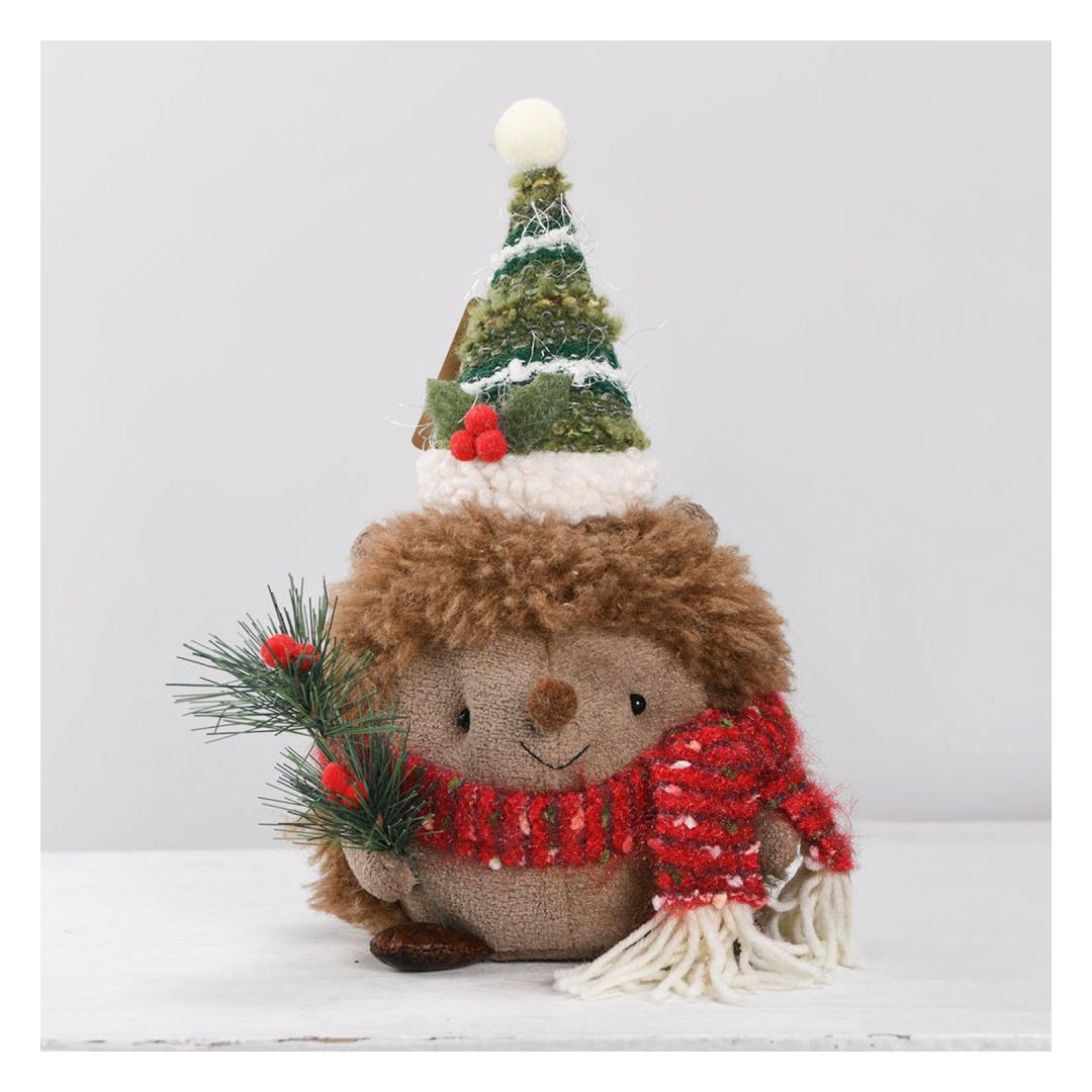Mitat: 16x14xH29cm Koriste FUN SIIM, jouluseppele punaisella huivilla.