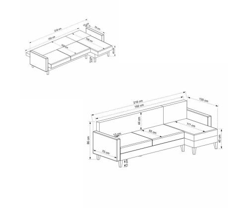 Sink into the plush cushions of our Corner Sofa-Bed and experience a level of comfort you've never felt before. The 26 DNS sponge in the seat area and 22 DNS in the seat back provide optimal support and cushioning, ensuring that you can relax in pure bliss. The sitting height of 45 cm and sitting depth of 55 cm offer the perfect balance between comfort and functionality.