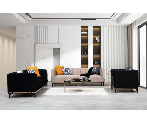 Tutvustame meie luksuslikku 3-kohalist diivanit, mille eesmärk on tuua teie koju glamuuri ja elegantsi. See diivan on oma elegantse musta ja kuldse värvilahendusega rafineerituse kehastus. Lõbutsege luksusesMuutke oma elutuba meie 3-istmelise diivaniga luksuslikuks puhkekohaks. Selle glamuurne kontseptsioon, mis on inspireeritud tipphotellidest, tõstab koheselt iga ruumi stiili.Päratu mugavusVajutage meie diivani pehmedesse padjadesse ja kogege võrratut mugavust. 8 cm 28 dns hall vahtpolster ja 5 cm 24 dns sulged pakuvad täiuslikku tasakaalu toe ja pehmuse vahel, mis tagab tõeliselt mõnusa istumiskogemuse. Fikseeritud istumis- ja seljapadjad tagavad, et teie diivan säilitab oma kuju ja mugavuse aastaid. Tiisikas ja praktilineMeie 3-kohaline diivan ei ole mitte ainult väljapaistev ese, vaid see on disainitud ka praktilisust silmas pidades. Kuivpuhastatav kangas teeb selle hooldamise lihtsaks ja hoiab selle puhtana. Kaks kaasasolevat padjakest, mis on täidetud vahtplastist ja silikoonvahust kombinatsiooniga, lisavad lisamugavust ja stiili. Kvaliteetne käsitööTugeva pöögipuidust ja puitlaastplaadist raamiga valmistatud diivan on valmistatud kestma. Mustad puidust jalad koos kuldse plastribaga ei taga mitte ainult stabiilsust, vaid lisavad ka elegantsi üldisele disainile. Tehnilised üksikasjad:Raam: Puit: Pöögipuit / puitlaastplaatKangas: Materjal: 100% polüesterPikkus: 222 cmLaius: 89 cmKõrgus: 75 cmVaht: 8 cm 28 DNS hall vaht + 5 cm 24 DNS sulega istumiseks.60% Snipe Foam / 40% Silicone Foam seljale2 padjakest kaasa arvatudPadjad: 60% Snipped Foam / 40% Silicone Foam: 60% Snipped Foam / 40% Silicone FoamFikseeritud istumis- ja seljapadiKuivpuhastatav kangasJalad: Mustad puidust jalad kuldse plastribagaVärv: Must ja kuldne Värv: Black Gold