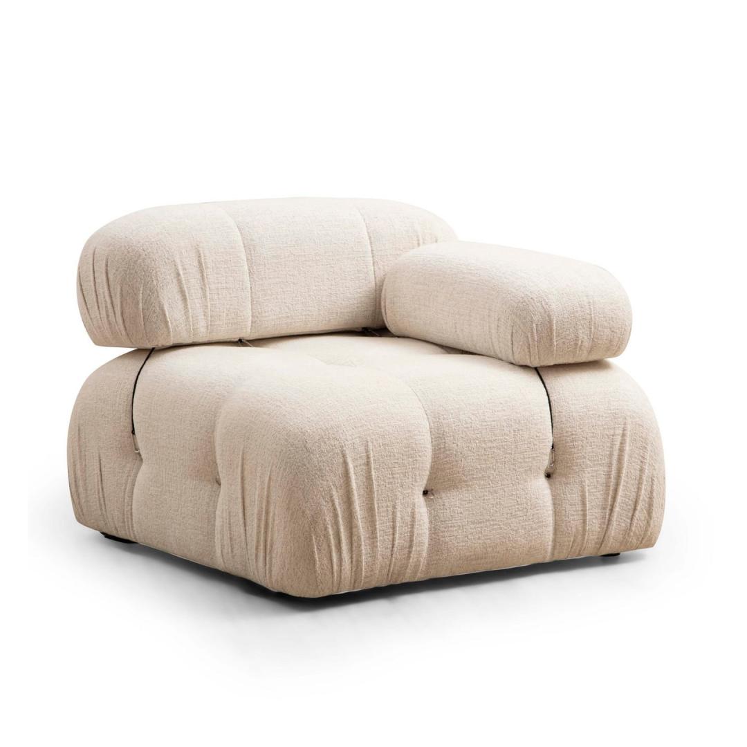 Esittelyssä on upea 1-istuttava sohva, mestariteos, joka herättää tunteita ja muuttaa olohuoneesi mukavuuden ja tyylin paratiisiksi. Verraton mukavuus ja kestävyysTämä sohva on valmistettu tukevasta pyökkipuusta, jonka lastulevyrunko takaa pitkäaikaisen kestävyyden. Selkänojan 28 dns-vaahtomuovipehmuste antaa optimaalisen tuen, kun taas 28 dns:n pehmeän harmaan vaahtomuovipehmusteen, 24 dns:n höyhenien ja jousien yhdistelmä istuimessa takaa pehmeän ja viihtyisän istumakokemuksen.Tyylikäs muotoilu ja monipuolisuusTämä sohva huokuu kermanväristä kangasta ja tyylikästä siluettia. Sen käsin irrotettava selkänoja- ja käsivarsijärjestelmä mahdollistaa helpon räätälöinnin ja mukauttamisen tilaan. Kiinteä istuintyyny takaa siistin ja huolitellun ulkonäön, ja kuivapesukelpoinen kangas takaa vaivattoman ylläpidon. Muunna tilasiOlitpa sitten luomassa hotellista inspiroitunutta tunnelmaa tai omaksumassa skandinaavisen designin minimalistista charmia, tämä sohva on täydellinen valinta. Sen kunnioitettava kermanväri tuo lämpöä ja rauhallisuutta mihin tahansa huoneeseen, ja sen kompaktit mitat tekevät siitä ihanteellisen pienempiin tiloihin. Puu: Pyökki / lastulevyKangas: Kangas: 100 % polyesteri Vaahtomuovi: 28 DNA pehmeää harmaata vaahtomuovia / 24 DNA höyheniä / jousi keskellä istuimessa, 60 % kampavaahtomuovia / 40 % silikonivaahtomuovia selkänojassaPituus: 95 cm, Leveys: 95 cm, Korkeus: 75 cmIstuimen syvyys: 65 cm, Käsinojan syvyys: 60 cmJalat: 60 cm: Kiinteä istuintyynyKuivapuhdistettava kangasRäätälöitävissä muilla moduuleilla Nauti äärimmäisestä mukavuudesta ja tyylistä 1-istuttavassa sohvassamme. Päivitä asuintilasi jo tänään ja koe ylellisyyden ja toiminnallisuuden täydellinen yhdistelmä. Väri: kerma