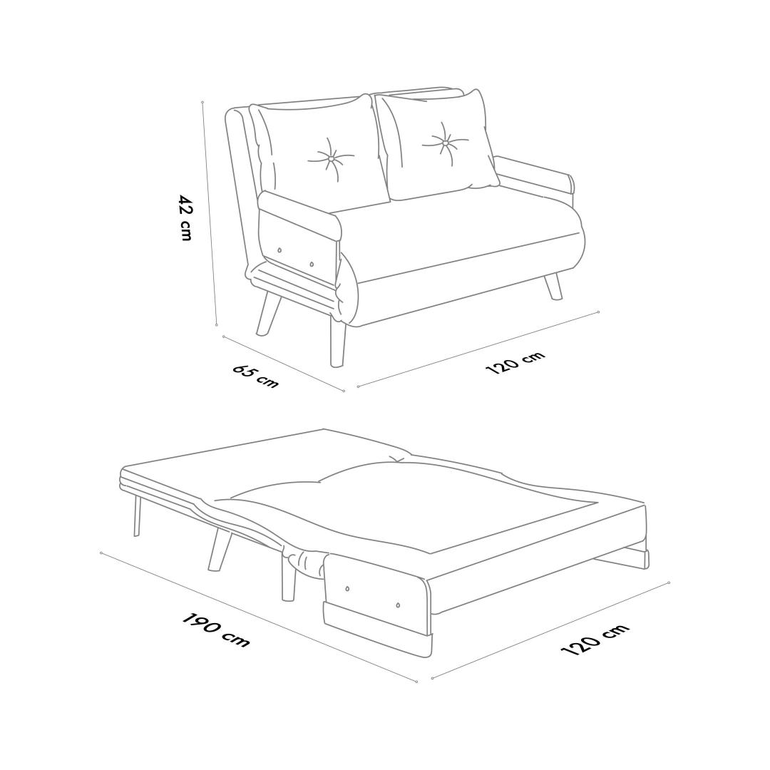 Measuring 78 cm x 120 cm x 82 cm as a sofa and 190 x 120 cm as a bed, this 2-Seat Sofa-Bed is perfect for small spaces or as an extra sleeping option for guests. The single seat design and generous seat dimensions make it comfortable for lounging or sleeping.