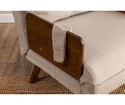 With dimensions of 77 cm x 70 cm x 82 cm as a sofa and 190 x 70 cm as a bed, this single-seat sofa bed is perfect for small spaces or as an extra sleeping option for guests. The wooden arm adds a touch of elegance, while the 65 cm seat depth and 42 cm seat height provide ample space for relaxation.
