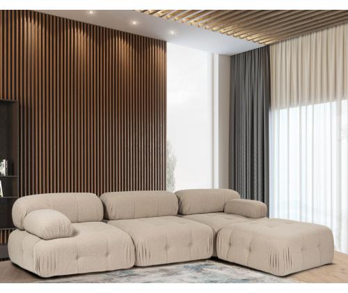 Corner Sofa Doblo 3 Seater with Pouffe ( L1-O1-1R-Pouffe) - Peach
