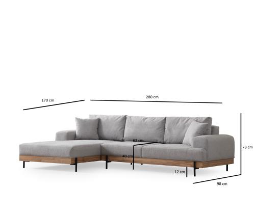 Corner Sofa Eti Oak Left - Grey