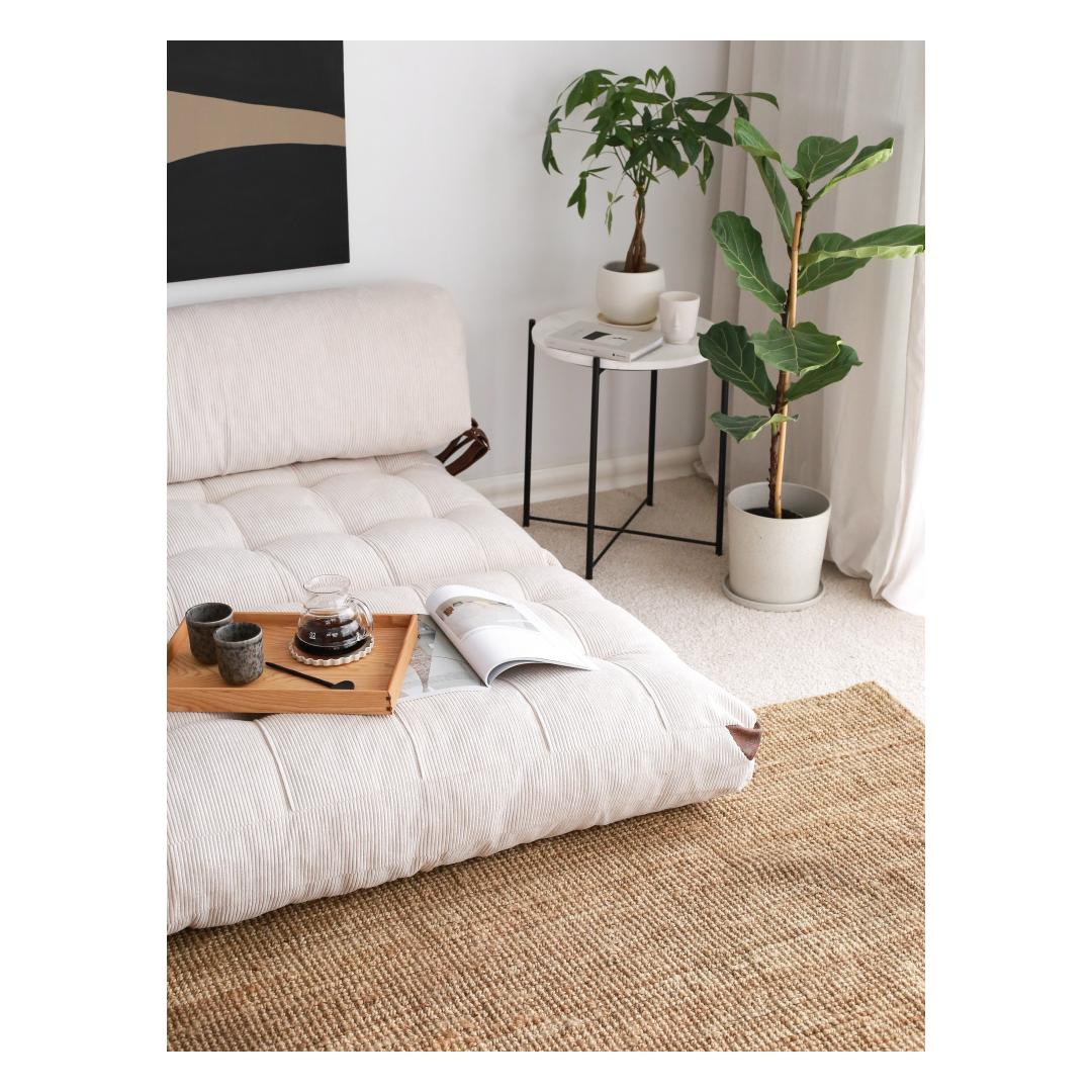 Muunna asuintilasi ylellisellä 2-paikkaisella sohvasängyllä, joka on valmistettu samettikordyylistä. Tämä monipuolinen huonekalu ei ole vain tyylikäs ja elegantti, vaan myös erittäin käytännöllinen, sillä se tarjoaa sinulle mukavan istumapaikan päivisin ja viihtyisän sängyn vieraille öisin.Koe äärimmäinen mukavuus ja tyyliPehmeä samettikordukangas lisää tyylikkyyttä mihin tahansa huoneeseen, kun taas pehmeä jäävaahto ja kuitutäyte takaavat maksimaalisen mukavuuden istuessasi tai nukkuessasi. Tyylikäs muotoilu ja selkeät linjat tekevät tästä vuodesohvasta täydellisen lisän mihin tahansa moderniin tai nykyaikaiseen kodin sisustukseen.Helppo muunneltavuusTämä 2-paikkainen vuodesohva on 120 cm leveä ja 150 cm pitkä, joten se sopii erinomaisesti pieniin tiloihin tai lisävuoteeksi kotiisi. Helppokäyttöisen mekanismin ansiosta voit muuttaa sen nopeasti ja vaivattomasti sohvasta sängyksi muutamassa sekunnissa, mikä tekee siitä ihanteellisen odottamattomia vieraita tai improvisoitua yökyläilyä varten.Tekniset tiedot:Tuotetyyppi: Tuotetyyppi: Älä tingi tyylistä tai mukavuudesta - investoi 2-paikkaiseen vuodesohvaamme ja päivitä asuintilasi jo tänään. Väri: valkoinen