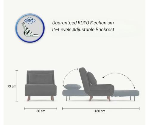 Our sofa-bed features a multiple position adjustable backrest with 14 levels, allowing you to find the perfect angle for relaxation. Whether you prefer sitting upright, reclining, or lying completely flat, this sofa-bed adapts to your needs, ensuring optimal comfort at all times.