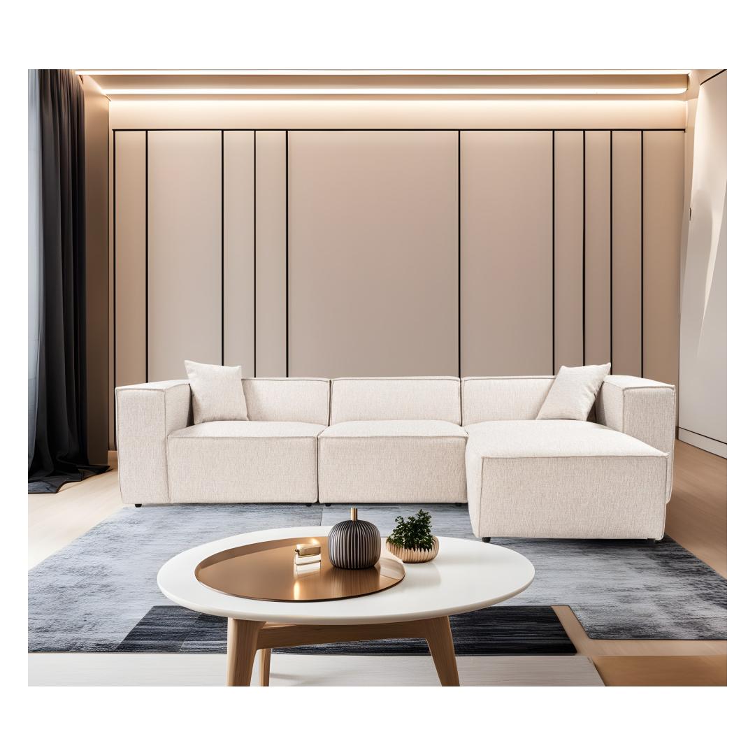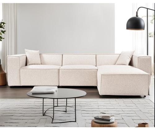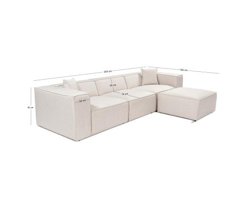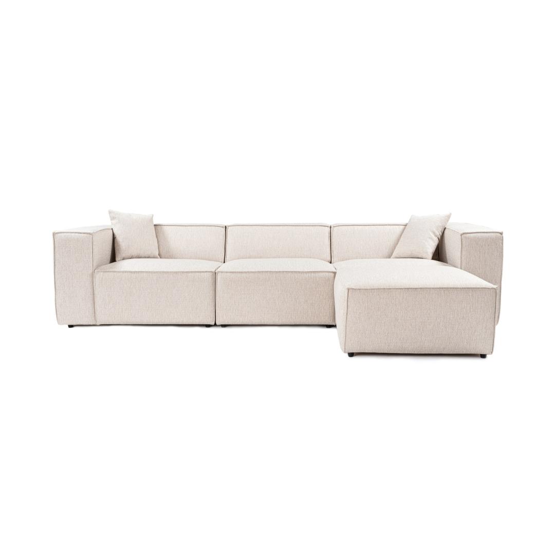 Corner Sofa Lora (L1-O1-1R-POUFFE ) - Light Brown
