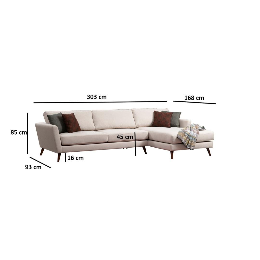 Esittelemme upean kulmasohvan, joka on täydellinen lisä mihin tahansa kotiin. Tämä hieno huonekalu on suunniteltu tuomaan sekä tyyliä että toiminnallisuutta olohuoneeseesi. Verraton mukavuus ja tyyliTämä sohvasänky on valmistettu pyökki- ja lastulevyn yhdistelmästä, joka on suunniteltu kestämään. 100 % polyesterikangas lisää tyylikkyyttä, kun taas beige yksivärinen kangas huokuu rauhaa ja levollisuutta. Teolliset ja skandinaaviset muotoiluelementit tekevät siitä monipuolisen valinnan mihin tahansa sisustukseen.Muunna tilasiMuuntaudu tilaanTämä kulmasohva muuntuu sohvasänkyjärjestelmän ja selkänojamekanismin ansiosta vaivattomasti mukavaksi sängyksi, joka tarjoaa vieraille viihtyisän nukkumatilan. Vaahtomuovi- ja höyhentäyte takaa äärimmäisen mukavuuden, kun taas keskellä oleva jousi antaa lisätukea istumiseen. Tekniset yksityiskohdat: Pyökki / LastulevyKangas: 100 % polyesteriPituus: 303 x 168 cmLeveys: 93 cmKorkeus: 85 cmSängyn pituus: 273 cmLeveys: 93 cmVaahtomuovi: 3 cm 28 DNA pehmeää harmaata vaahtomuovia / 24 DNA höyheniäJousi keskellä istumista varten60 % ommeltua vaahtomuovia / 40 % silikonivaahtomuovia selkänojassaTyyny: 60% ommeltu vaahto / 40% silikonivaahtoKoko: 45 x 45 cm (4 kpl)Kiinteä istuin-/selkänojatyynyKuivapesukelpoinen kangasMuovijalatMuovin korkeus: 19 cmVäri: beige ja ruskeaVäritä asuintilasi kulmasohvalla ja koe mukavuuden, tyylin ja toiminnallisuuden täydellinen yhdistelmä. Älä missaa tätä uskomatonta huonekalua, joka tekee kodistasi rentoutumisen tyyssijan. Tilaa nyt ja hemmottele itsesi ylellisyydellä kuin koskaan ennen! Väri: Beige Brown