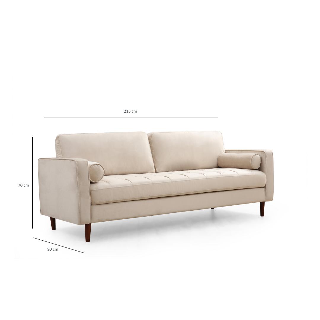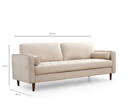 Tutvustame meie luksuslikku 3-kohalist diivanit, mis on mõeldud mugavuse ja elegantsi toomiseks teie eluruumi. Selle diivani massiivse pöögipuidust ja puitlaastplaadist raam on ehitatud kestma. 100% polüesterkangas lisab elegantsust, samas kui pähklipuust jalad annavad stiilse viimistluse. Päratu mugavusVajutage meie 3-kohalise diivani mahlakatesse padjadesse ja kogege ülimat lõõgastust. 8 cm 28 dns hall vahtpolster ja 5 cm 24 dns sulged istumiseks tagavad optimaalse mugavuse, samal ajal kui 60% vahtplastist ja 40% silikoonvahust seljapadjad pakuvad suurepärast tuge. Kaks samadest kvaliteetsetest materjalidest valmistatud padja on lisatud lisamugavuse tagamiseks.Versatiivne disainKaasaskantavad istumis- ja seljapadjad võimaldavad teil kohandada oma istumiskorraldust, mistõttu sobib see ideaalselt igaks juhuks. Kuivpuhastatav kangas tagab lihtsa hoolduse, hoides teie diivanit värske ja puhta. Ajatu elegantsOma soliidse beeži värvi ja skandinaavia inspiratsiooniga disainiga lisab meie 3-istmeline diivan igasse ruumi elegantsust. Olenemata sellest, kas soovite hotelli- või hubast skandinaavia-stiilis atmosfääri, on see diivan ideaalne valik. Tehnilised üksikasjad:Raam: Puit: Pöögipuit / puitlaastplaatKangas: 100% polüesterPikkus: 215 cm, laius: 90 cm, kõrgus: 70 cm.Vaht: 8 cm 28 DNS hall vaht + 5 cm 24 DNS sulega istumiseks.60 % Snipped Foam / 40 % Silicone Foam seljale2 padja kaasas, läbimõõt: 10 cmJalad: Pähklipuust jalad: Pähklipuust jaladIstme laius: 190 cm, istme kõrgus: 46 cm, istme sügavus: 58 cmIstmepadja paksus: 16 cm, jalgade kõrgus: 16 cmSeljapadja laius: 95 cm, seljatoe kõrgus: 68 cm, seljapadja paksus: 18 cmKäetoe laius: 12 cm, käetoe kõrgus: 52 cm, käetoe sügavus: 89 cmVärv: beež Värv: Beige
