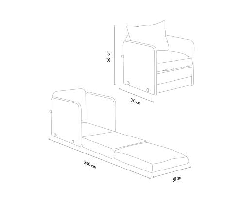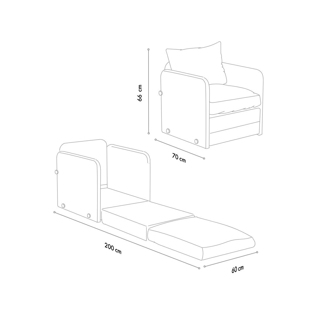 Measuring 68 cm x 70 cm x 66 cm as a sofa and 200 x 60 cm as a bed, this 1-seat sofa-bed offers ample space for lounging or sleeping. The single seat design provides a cozy spot for relaxation, while the sleeper function allows you to easily transform it into a bed when needed.