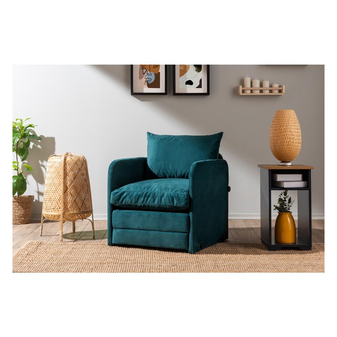 Transform your living space with our 1-Seat Sofa-Bed in a stunning Petrol Green color. This versatile piece is not just a sofa, but also a comfortable bed for those unexpected guests or lazy movie nights.