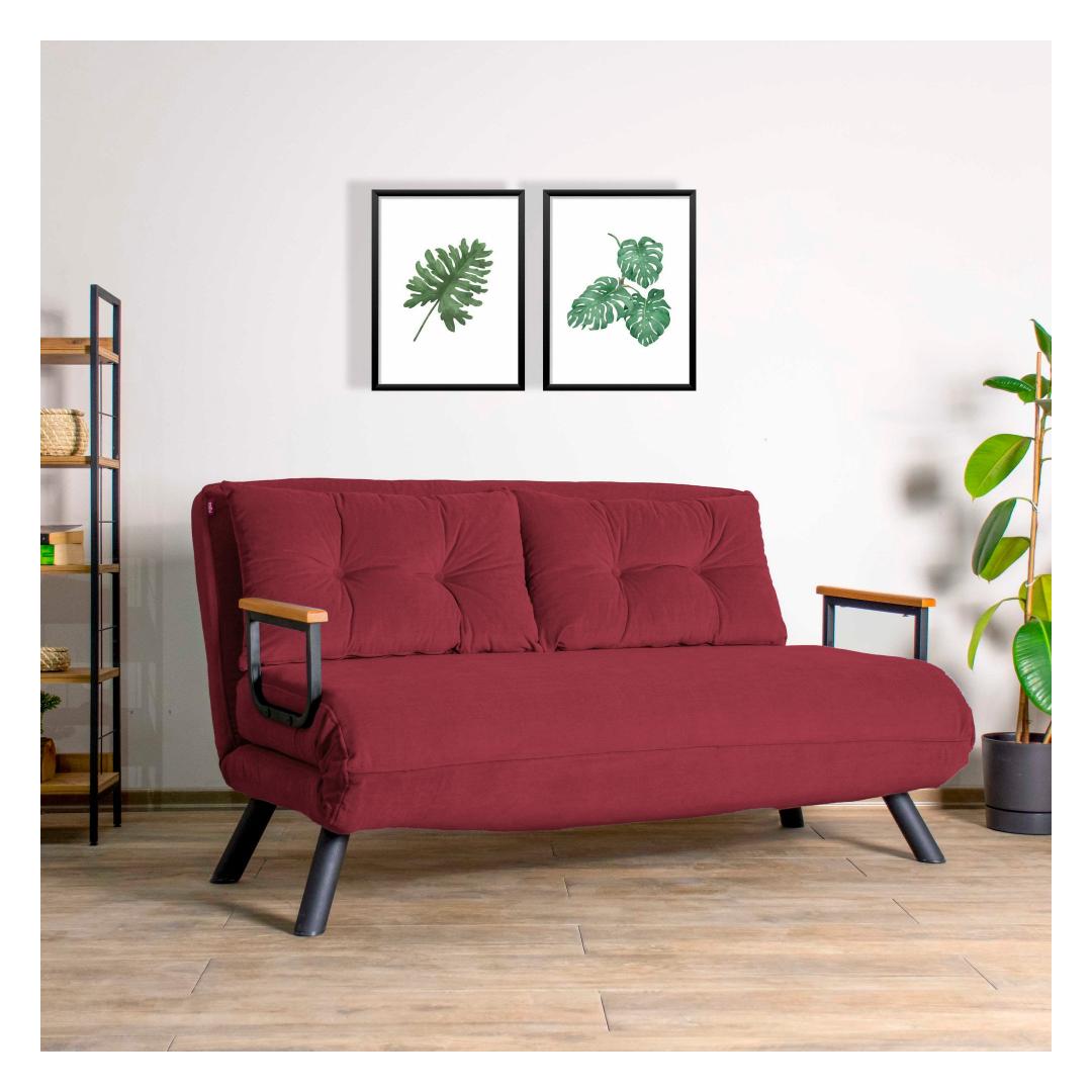Transform your living space with our 2-Seat Sofa-Bed in a stunning maroon color. This versatile piece is not just a sofa, but also a comfortable bed for your guests to sleep on.