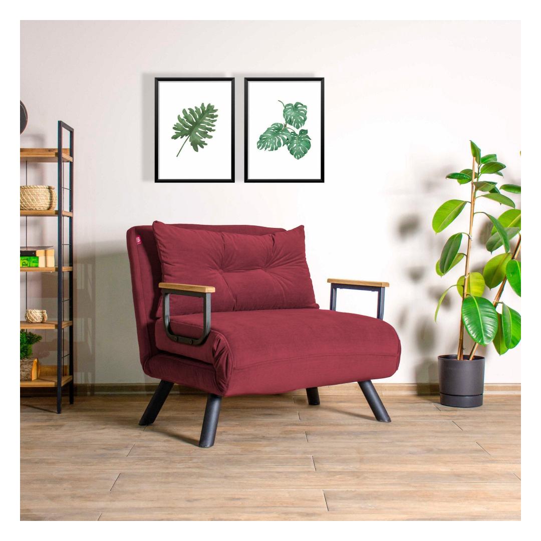 Transform your living space with our 1-Seat Sofa-Bed in a stunning maroon color. This versatile piece is not just a sofa, but also a comfortable bed for your guests or for a cozy night in.