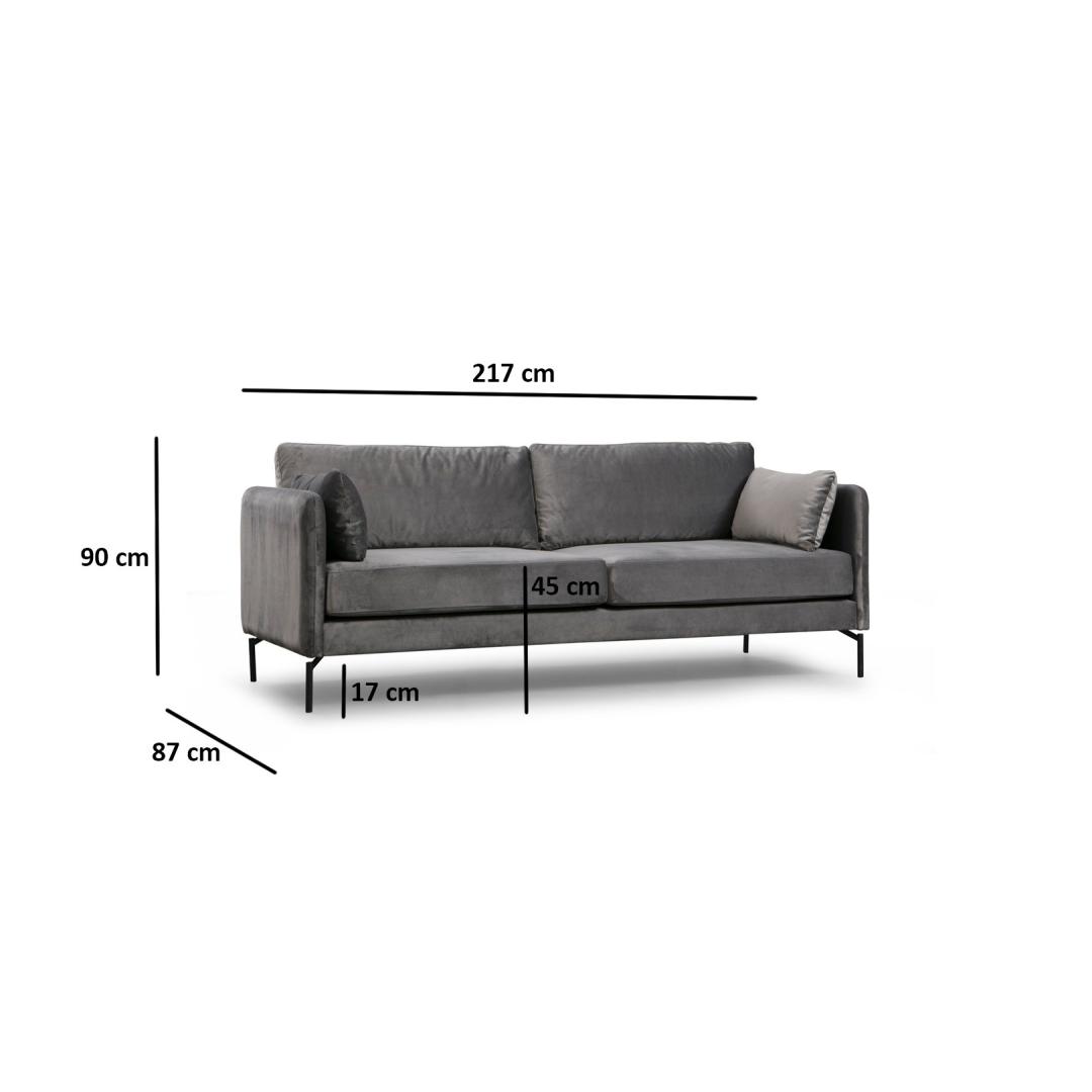 Tutvustame meie suurepärast 3-kohalist diivanit, mis on meistriteos, mis muudab teie eluruumi mugavuse ja stiili paradiisiks. Võrratu mugavus ja vastupidavusSee diivan on valmistatud tugevast pöögipuidust ja puitlaastplaadist valmistatud raami abil, mis on ehitatud nii, et see peab vastu aja katsumusele. 100% polüesterkangas lisab elegantsi, tagades samas pikaajalise vastupidavuse.Lõbutsege luksusesVajutage pehme halli vahtpolsterduse, sule ja silikoonvahu kombinatsiooniga täidetud mahlakatesse padjadesse. 8 cm 28 dns pehme hall vahtpolster tagab täiusliku tasakaalu toe ja mugavuse vahel, samas kui 3 cm 24 dns sulgedele lisab luksusliku puudutuse. Lõdvestuge stiilseltSee diivan on oma elegantse ja moodsa disainiga keerukuse kehastus. Massiivne antratsiitne värvus õhkab elegantsi, muutes selle ideaalseks täienduseks igale hotelli või tööstuslikust inspireeritud sisustusele. Kergesti hooldatavKuivpuhastatav kangas võimaldab vaevata puhastamist, tagades, et teie diivan näeb alati välja nagu uus. Tehnilised üksikasjad:Raam: Pöögipuit / puitlaastplaatKangas: Materjal: 100% polüesterPikkus: 217 cm, laius: 87 cm, kõrgus: 90 cm.Vaht: 8 cm 28 DNS pehme hall vaht/ 3 cm 24 DNS vahtpolster/8 cm 24 DNS sulg istumiseks.60% narmastatud vaht / 40% silikoonvaht seljalePadi: 60% Snipped Foam / 40% Silicone FoamSuurus: 58 x 31 x 15 cm (2 tükki)Fikseeritud istumis-/ seljapadiKuivpuhastatav kangasJalad: Pähklipuust jaladVahu kõrgus: 18 cmVärv: HallUuendage oma eluruumi meie 3-kohalise diivaniga ja kogege täiuslikku segu mugavusest, stiilist ja vastupidavusest. Tellige kohe ja hellitage väärilist luksust. Värv: Grey