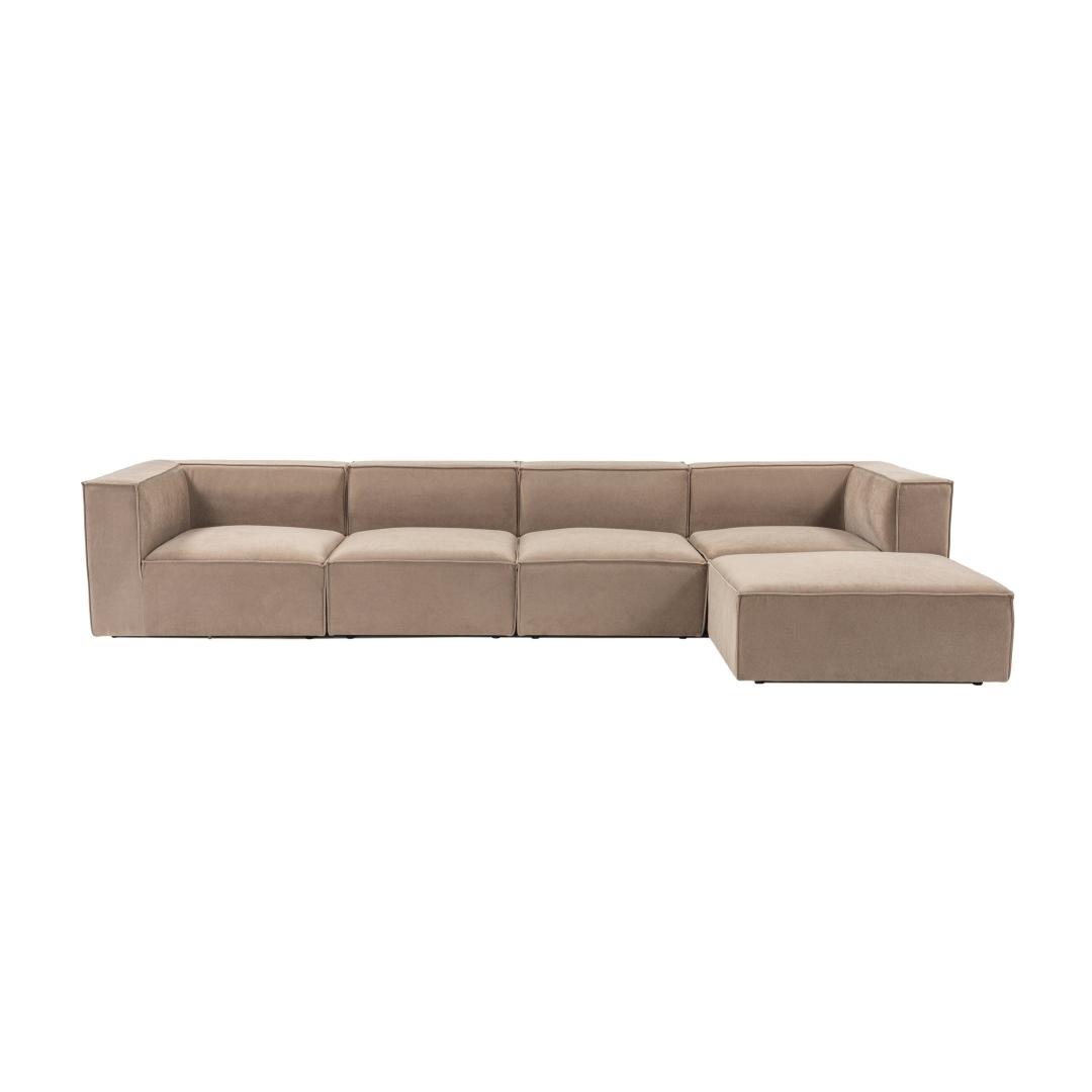 Corner Sofa Sora (L1-O1-O1-1R-POUFFE ) - Cappuccino