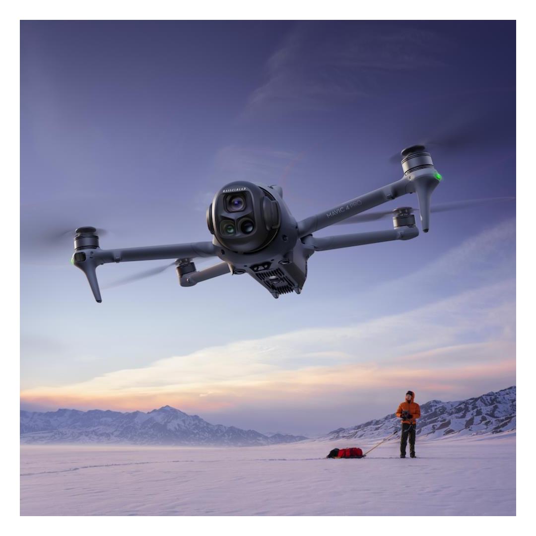 100 megapikselin Hasselblad-pääkamera, suuret CMOS-kaksoistelekamerat, Infinity Gimbal 360°:n pyörimisellä, 0,1-Lux Nightscape Omnidirectional Obstacle Sensing, O4+-videolähetys...DJI Mavic 4 Pro on peliä mullistava, ylpeilemällä huippuluokan ominaisuuksilla, jotka määrittelevät teknologiamme uudelleen ja vievät DJI-dronen kuvantamisen ja lentosuorituskyvyn ennennäkemättömälle tasolle. Tämä kolmen kameran lippulaivadroni tulee muuttamaan tapasi luoda ja tutkia ilmakuvauksen uusia näköaloja.