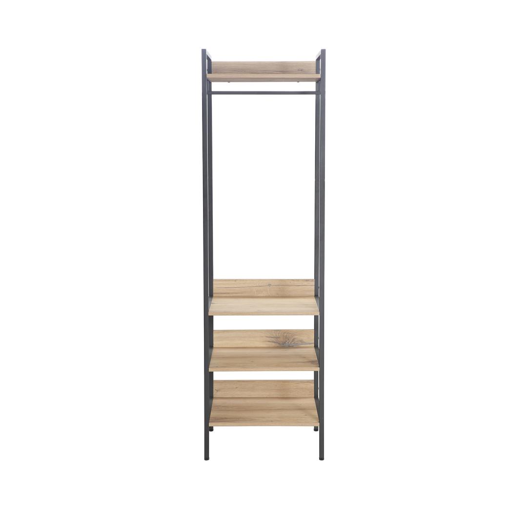 Ylimmän hyllyn alla on tanko vaatetankojen ripustamista varten. Etuhylly HANNES 52x40xH180cm, maalaismainen melamiini.