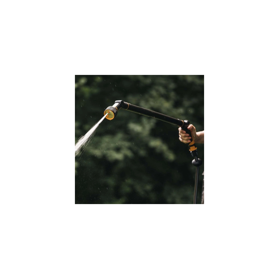 180° swivel, interchangeable SoftGrip nozzle head for precise water jet, front-trigger flow control for efficient work