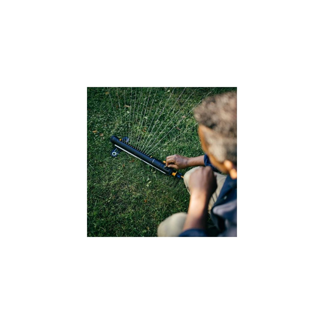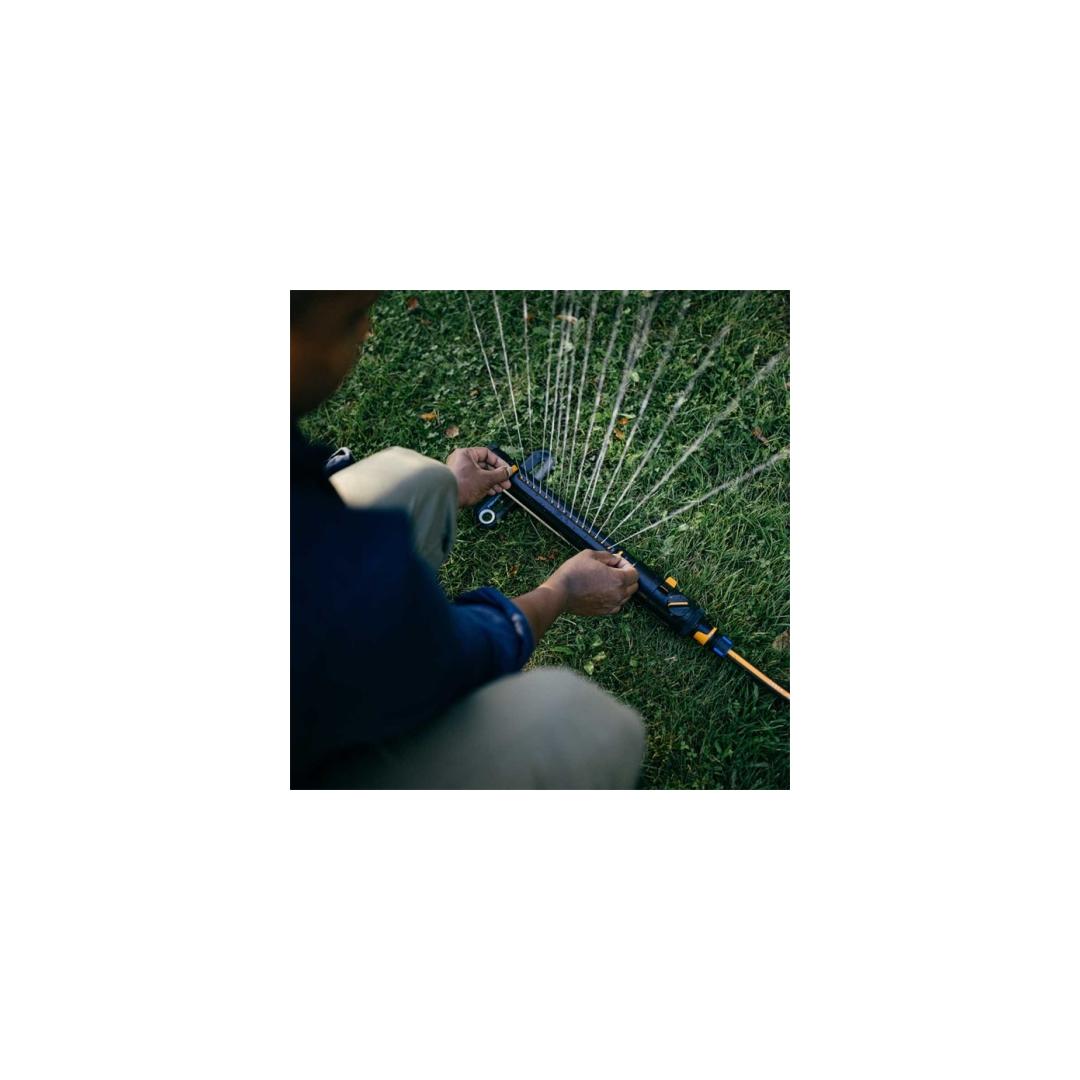 - The highly adjustable Fiskars X-series™ S-M Oscillating sprinkler ensures ideal water consumption