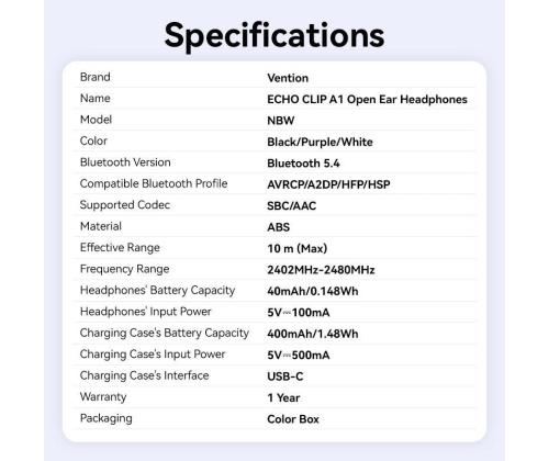 Wearing style Open-ear, Calls/Music/Sport/Everyday