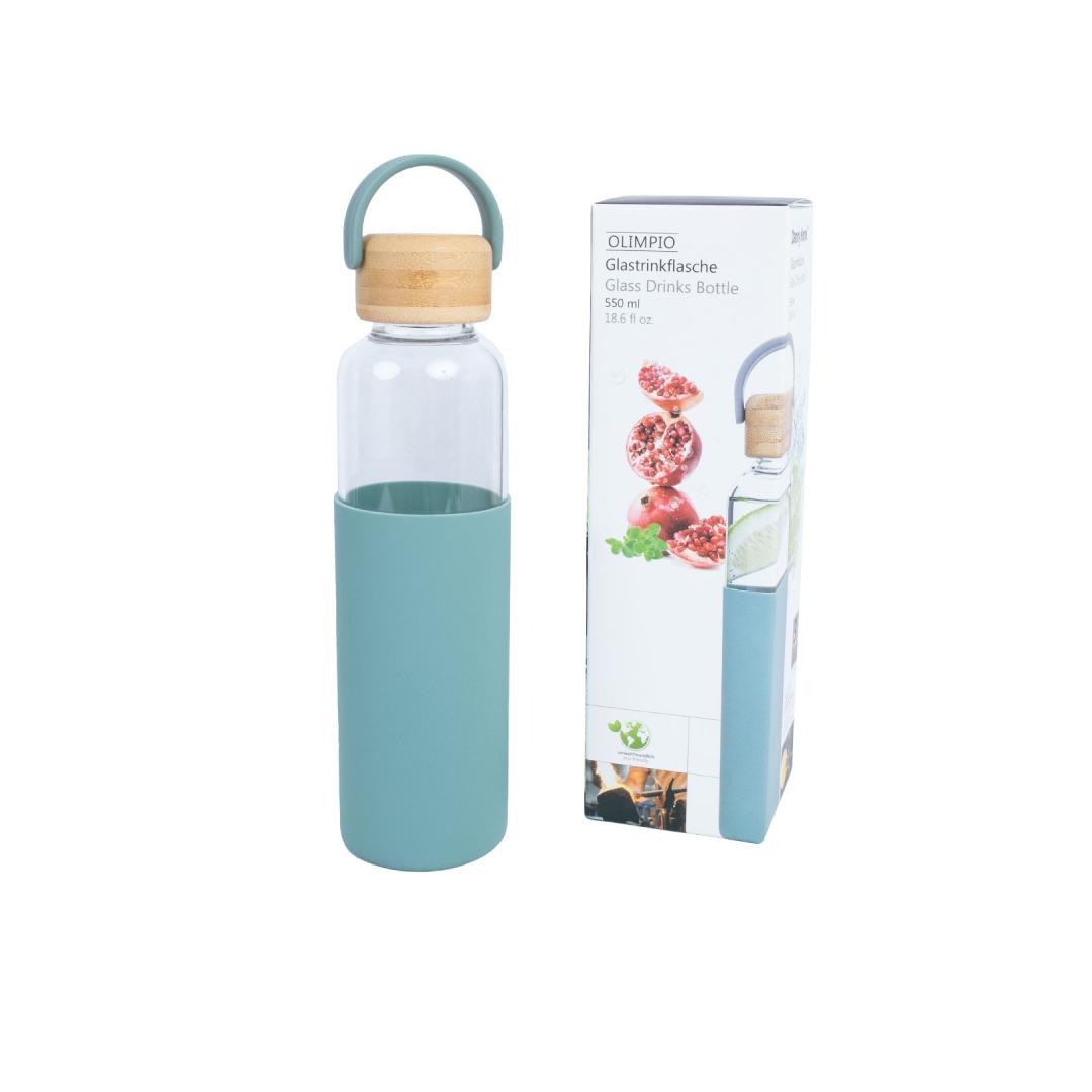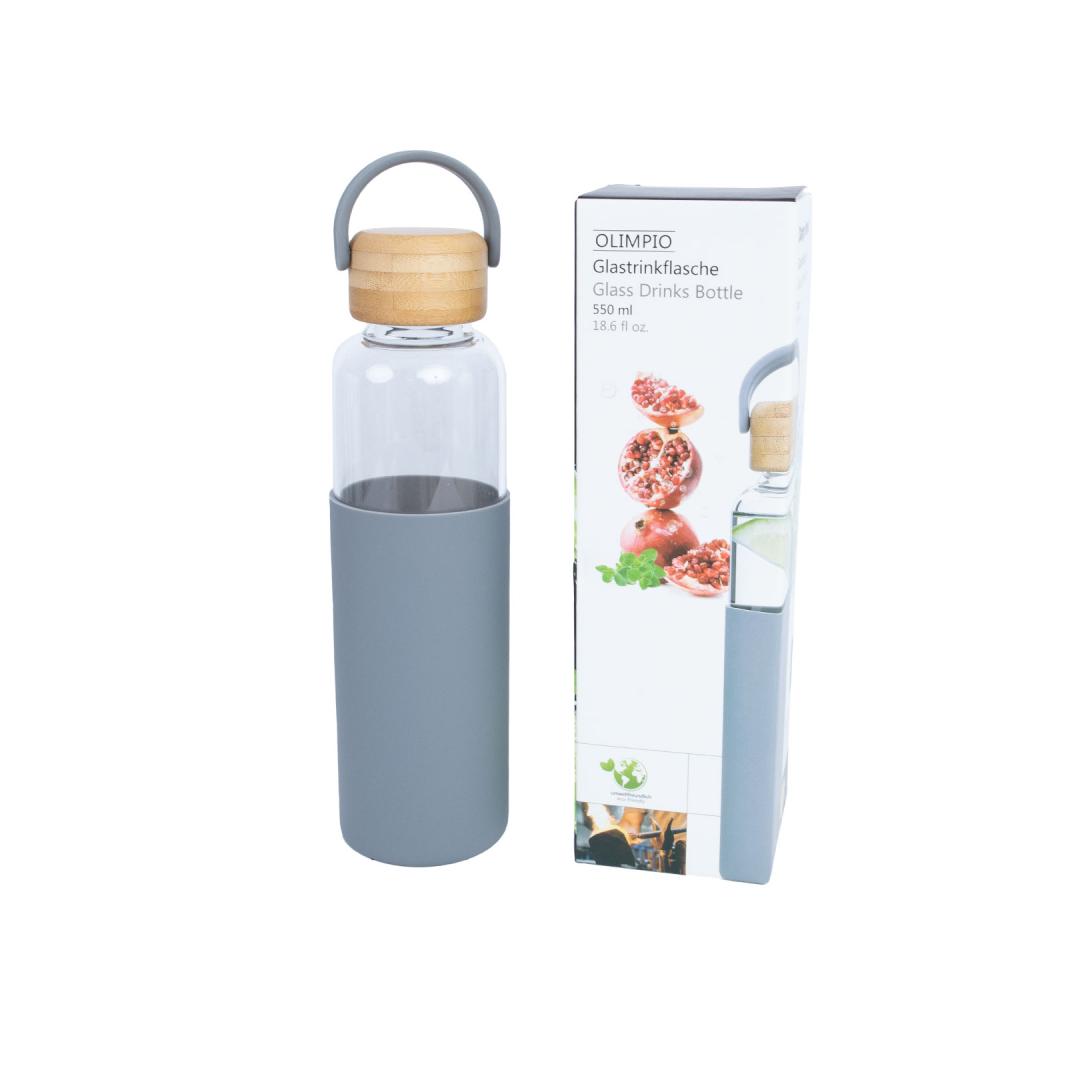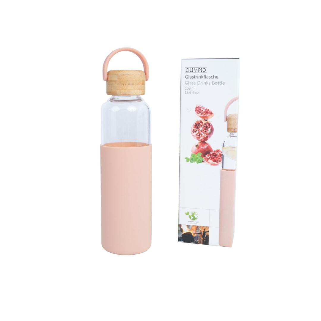 Juomapullo GLASS H22,5cm 550ml, lasia, bambukorkki