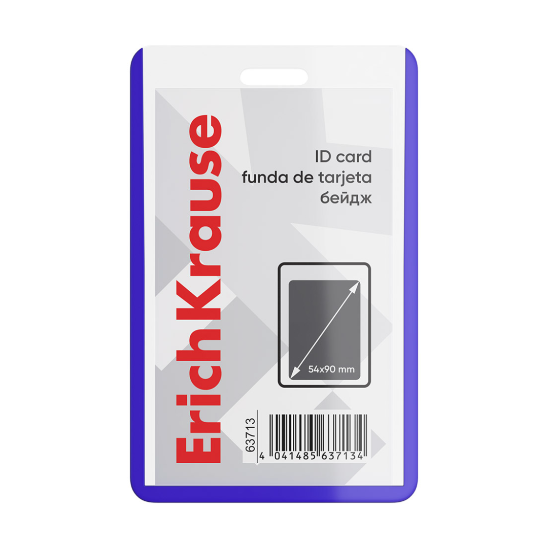 Pystysuuntainen henkilökortti. Kortin materiaali on PVC, väri läpikuultavan sininen. Kortin sisämitta on 54x90 mm. Kortti soveltuu henkilökorttien ja kulkukorttien säilyttämiseen.